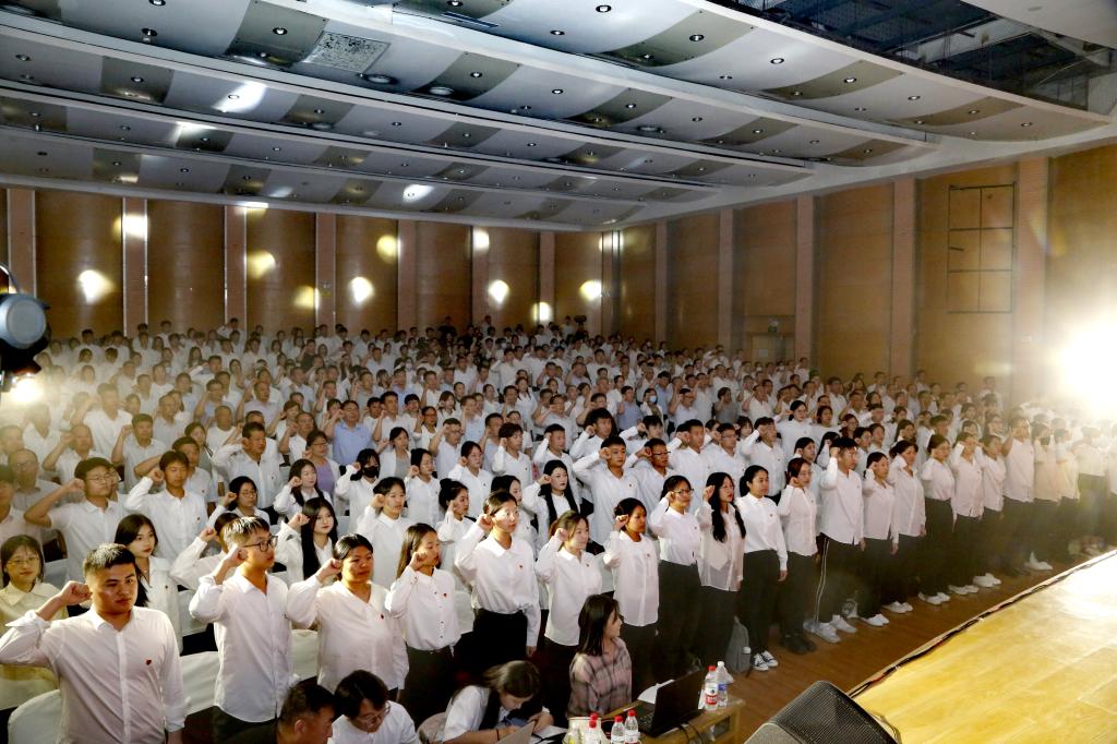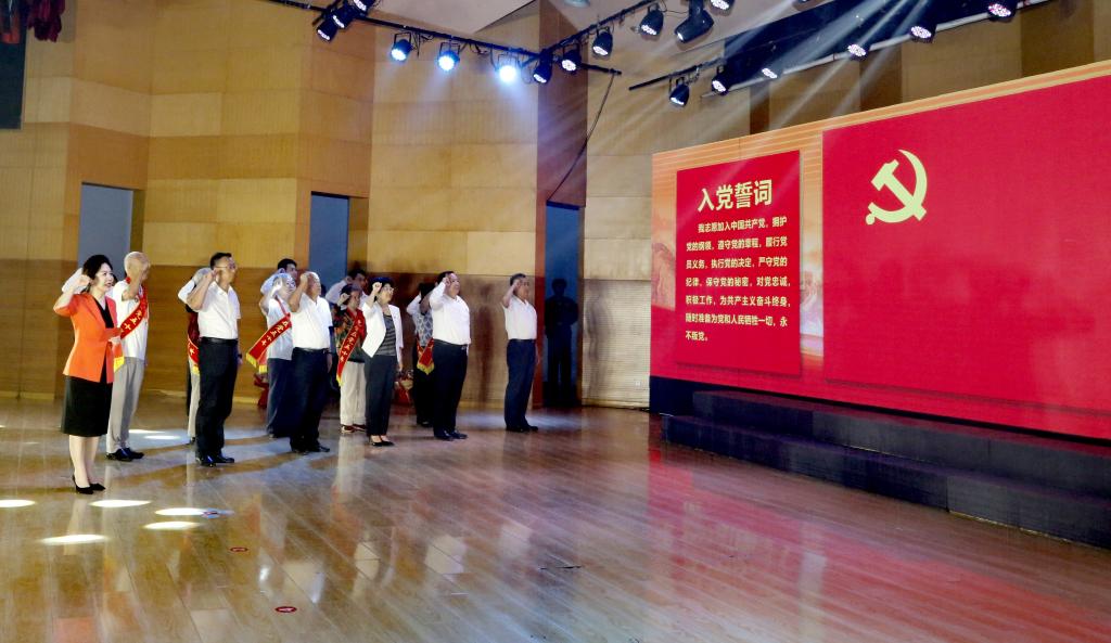 最后,全体党员面对鲜红的党旗,举起右手,庄严宣誓,新党员们许下了铮铮誓言,老党员们重温了入党初心。