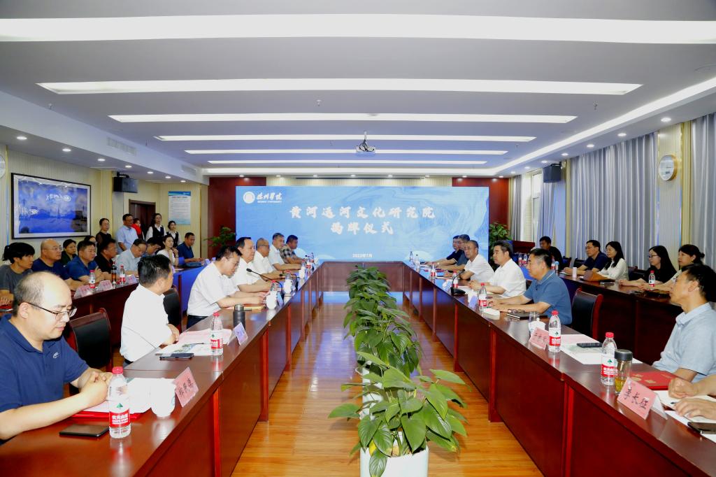 揭牌仪式上,车滨致辞。车滨向亲临揭牌仪式现场的各位领导、嘉宾、专家学者们表示欢迎,对德州市委、市政府长期以来给予学校建设发展的支持表示感谢,向为研究院筹办工作倾注精力、做出贡献的专家学者和广大教职员工致以崇高的敬意。他介绍了学校围绕黄河文化研究、运河文化研究与黄河—大运河“两河牵手”工程等方面已开展的理论研究和实践工作。他说,学校成立黄河运河文化研究院,是贯彻落实习近平总书记在文化传承发展座谈会上重要讲话精神,主动对接国家战略需求,积极践行服务区域发展使命的重要举措。研究院紧扣学科建设、国家需求和地方发展,整合校内外资源和研究力量,努力打造专业化、高水平学术研究平台,将进一步推动两河文化研究全面纵深发展。下一步将立足区域经济社会发展需求,主动承担一批国家、省市研究项目,推出一批高质量研究成果,逐步将研究院建设成为特色鲜明、优势突出、有影响力的黄河运河融合发展研究学术高地,黄河、运河文化传播交流平台,跨学科创新人才培养基地,文化产业孵化源头,黄河流域生态保护和高质量发展、大运河保护传承利用的高端智库,为黄河、大运河国家文化公园建设及打造独具特色的“两河牵手”宏伟景观提供智力支持。