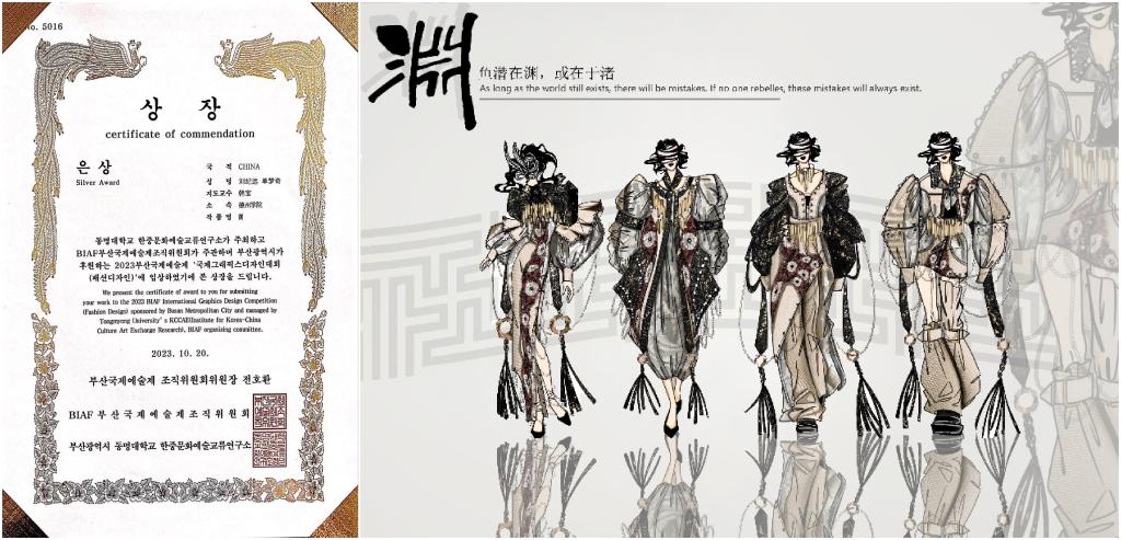 近日,在国际艺术创意领域极具影响力的“2023BIAF釜山国际艺术节”在韩国釜山落下帷幕。今年会纺织服装学院师生取得佳绩,分别获得银奖2项、铜奖1项、特别奖3项、优秀奖1项。