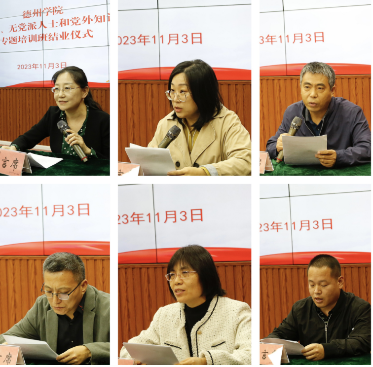 在结业式上,6名学员代表围绕培训期间所思所想谈体会、谈收获、谈感想。大家纷纷表示,专题培训班内容充实,帮助学员们提升了理论水平,增进了沟通交流,凝聚了思想共识,汇聚了奋进力量,今后将积极履职、建言献策,把学习成果转化为推动工作实践的强大动力,始终与中国共产党同心同德、同向同行,立足本职、建功立业,为学校事业发展和地方经济社会发展贡献智慧和力量。