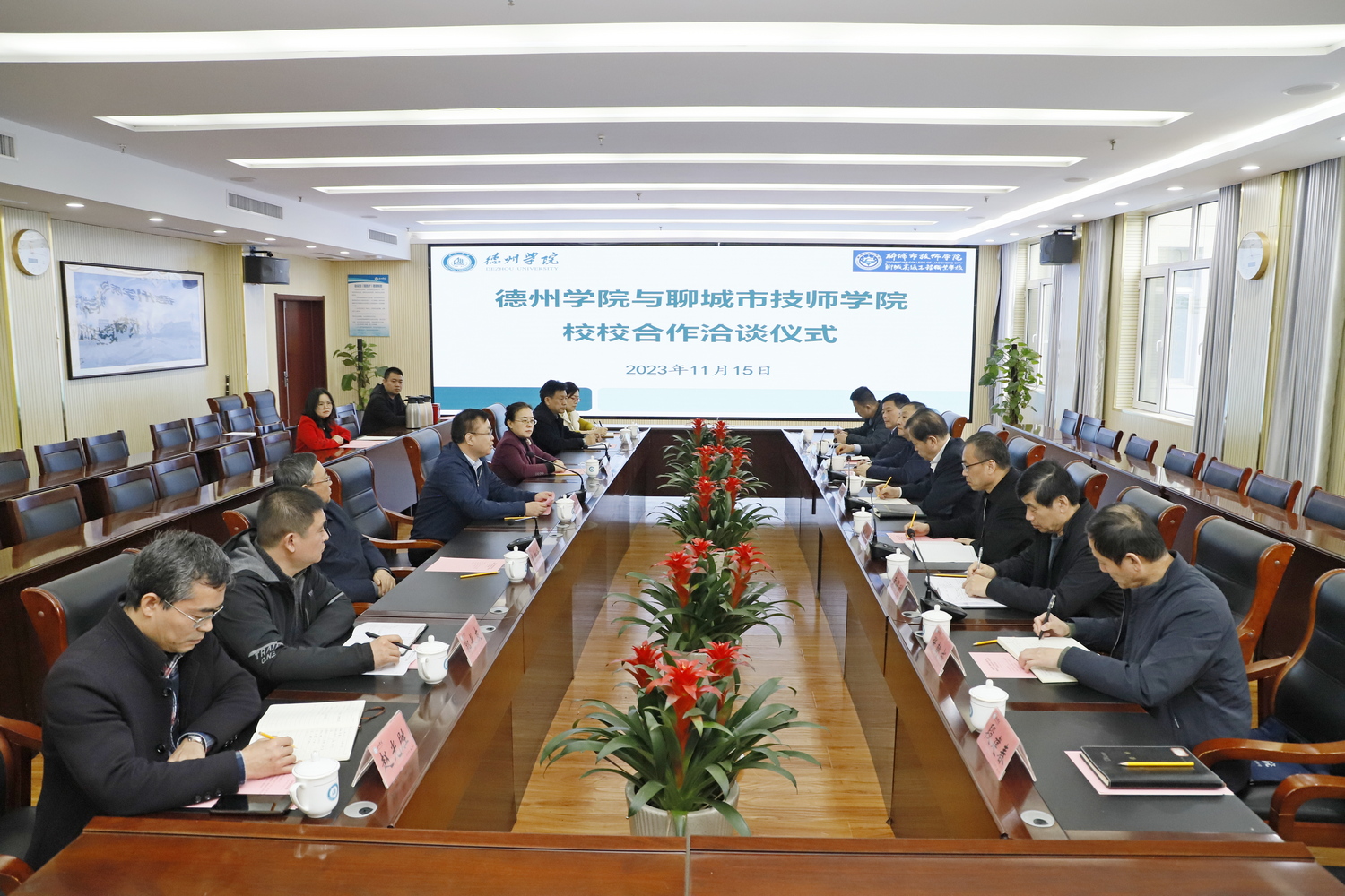 11月15日,为贯彻《中共中央办公厅 国务院办公厅印发<关于推动现代职业教育高质量发展的意见>的通知》(中办发〔2021〕43号)、《国务院关于印发国家职业教育改革实施方案的通知》(国发〔2019〕4号)和《教育部 山东省人民政府关于整省推进提质培优建设职业教育创新发展高地的意见》(鲁政发〔2020〕3号)等文件精神,加快现代职业教育建设,构建人才成长“立交桥”,推进中职学校与本科院校对口贯通“3+4”分段人才培养试点工作顺利实施,聊城市技师学院党委书记金同元,党委副书记、院长徐公义,党委委员、副院长徐洪祥一行来今年会洽谈“3+4”对口贯通分段培养等校校合作事宜。