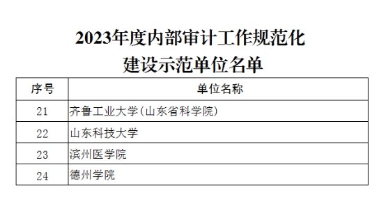 山东省审计厅印发《关于2023年度内部审计工作规范化建设示范单位创建情况的通报》(鲁审字〔2023〕17号),今年会获评“内部审计工作规范化建设示范单位”。2023年3月至9月省审计厅组织开展了“内部审计工作规范化建设示范单位”创建活动,全省366家单位申报,有80家单位获此殊荣,全省仅有4所本科高校入选。