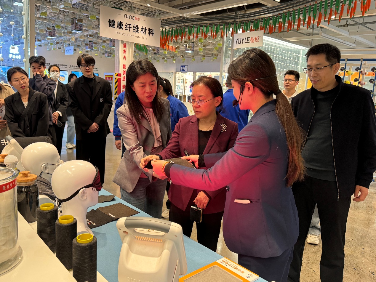 徐静一行参观了愉悦家纺居家世博馆,在愉悦家纺总经理甘丽英、校友吕春会等人的陪同下进行现场考察、深入了解企业运营情况。随后,与企业相关人员进行了座谈。徐静简要介绍了学校历史沿革、学科建设工作、人才培养特色等情况,她表示希望与愉悦家纺有限公司在学生实习就业、鲁锦学院建设、新型纤维与功能纺织品创新研究院的科研创新等方面加强合作,搭建高质量就业供需平台,深化产学研融合,共同打造创新人才培养新模式,推进校企合作。