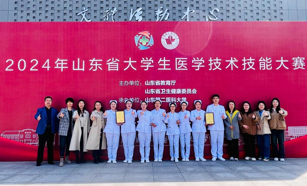 山东省大学生医学技术技能大赛护理学专业赛道是护理学领域的年度盛事。为组织好本次大赛,学院成立了以院领导为组长的领导小组,团委、护理系、实验中心等多部门联动,为选手提供雄厚的师资力量和良好的后勤服务。本次竞赛指导实行排班制,临床合作单位老师及校内教师通力合作,从学生礼仪、知识、技能和综合素质全面训练。通过规范各项护理操作标准,加强理论和实践的密切联系,提高了学生的学习能力、分析解决问题能力、创新能力、操作能力、沟通能力,进一步彰显团队合作精神,使学校教学目标与临床护理工作需求更趋一致,实现学校护理教育与临床工作岗位紧密衔接。