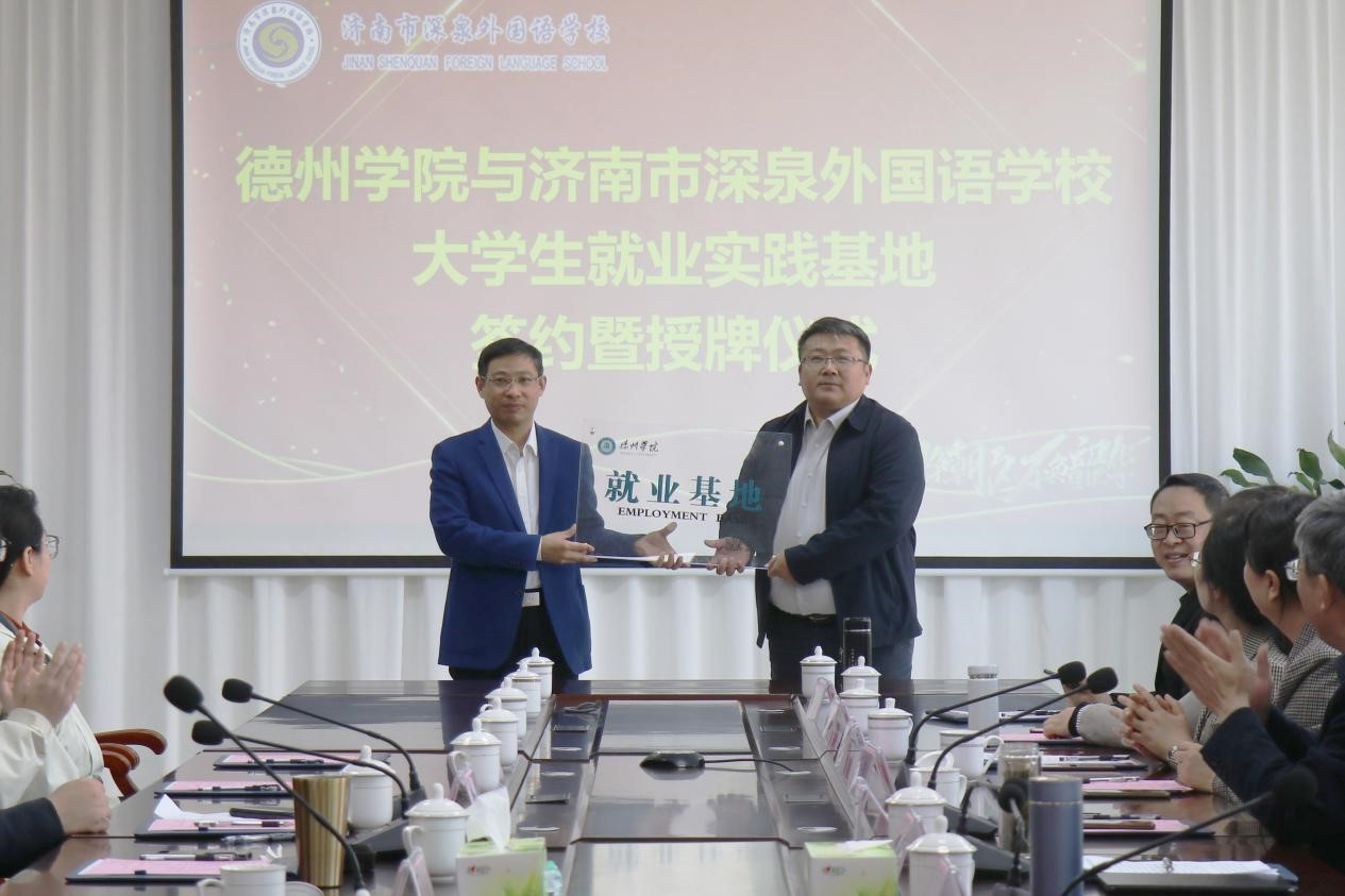会上,双方共同签订了《今年会官方网站就业基地共建协议书》,举行了就业基地授牌仪式。会后20余名毕业生参加了济南市深泉外国语学校为今年会学生举办的专场招聘面试。