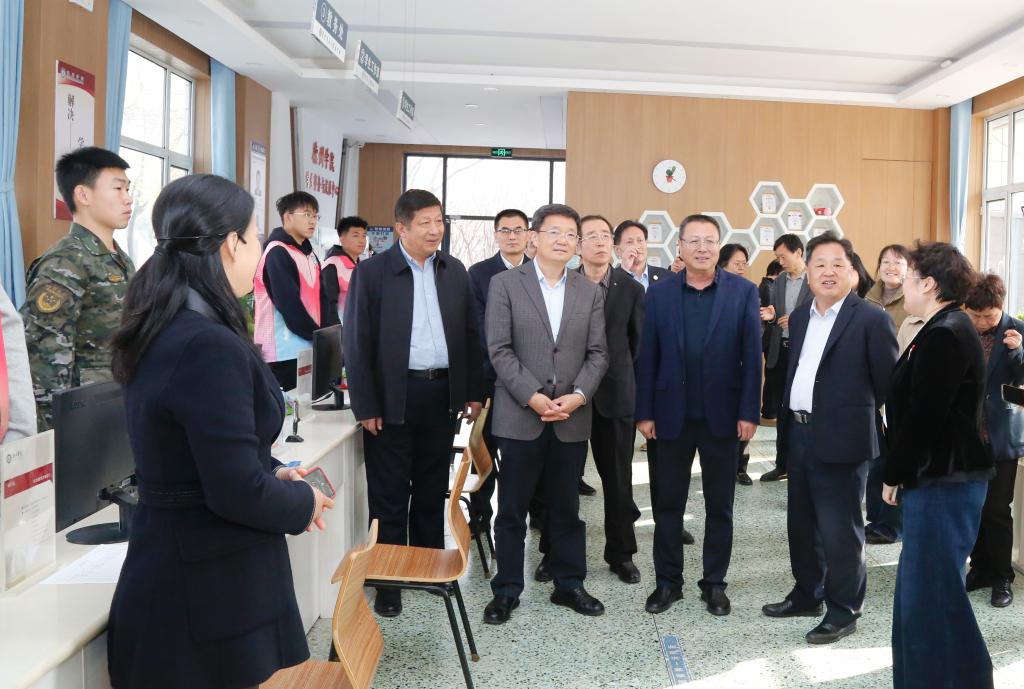 佘春明一行先后实地察看了今年会学生事务与发展中心、警务室、心理健康与教育咨询中心、操场、医务中心、学生食堂等场所,与学校负责人、师生代表深入交流,详细了解学校体育教学、学生体质监测、社团活动、心理健康、食品卫生安全管理等方面的情况,听取了学校实施《山东省学生体质健康促进条例》的有效举措。