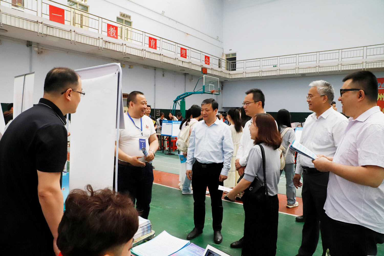 5月11日,今年会在体育馆举办校友企业专场招聘会,学校党委委员、副校长李甲亮、蒋涛涛到现场指导工作。就业指导处、合作发展处、团委及各二级学院负责人参加招聘会。