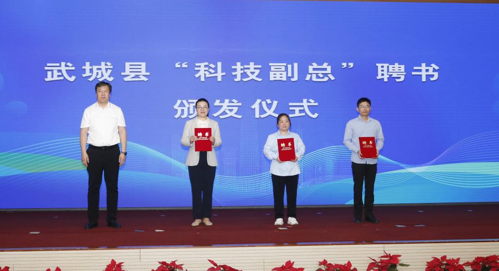 胡星海为今年会武城县企业“科技副总”代表颁发聘书。