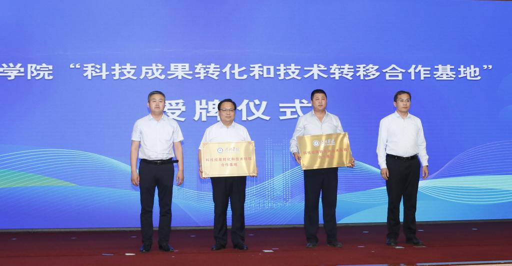 张明峰、于家峰分别为古贝春集团有限公司、武城县大力农业机械有限公司“科技成果转化和技术转移合作基地”授牌。