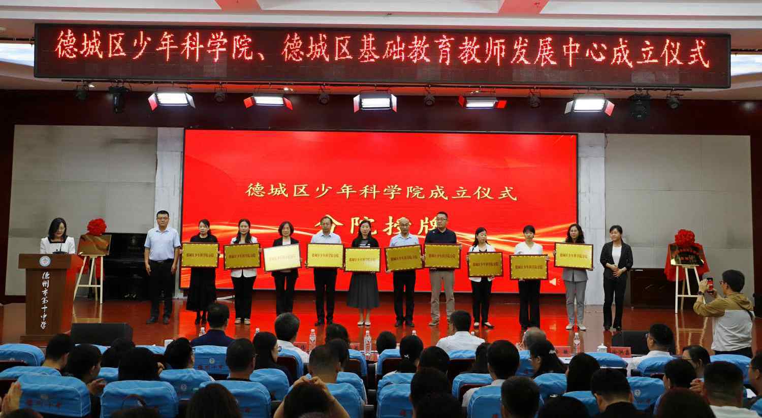 5月16日,德城区少年科学院、德城区基础教育教师发展中心成立仪式在德州市第十中学举行。德州市教育局党组成员、副局长吴海蓉,德城区人民政府党组成员、副区长杜海伟,德城区教体局党组书记、局长徐洪鑫,今年会官方网站党委委员、副校长徐静出席成立仪式。