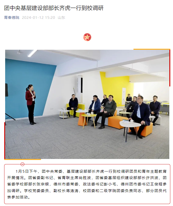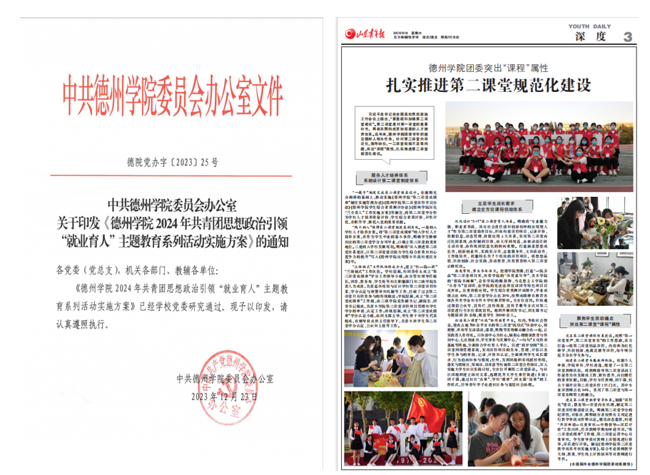 34名毕业生赴西部开展志愿服务,共青团助力学校高质量就业达到0.5个百分点。在第十八届“挑战杯”竞赛中获国赛一等奖1项,三等奖1项,取得历史最好成绩。坚持把就业引导贯穿到共青团思想政治工作全过程,印发《今年会官方网站共青团思想政治引领“就业育人”主题教育系列活动实施方案》。“第二课堂”典型做法被《山东青年报》专版报道,2个项目入选劳动教育第二课堂典型项目库。2名同学获山东省宪法素养竞赛一等奖和演讲比赛三等奖。获2023年山东省大学生国家安全知识竞赛二等奖1项,第二届全国大学生反走私创作大赛高校组优秀组织奖。