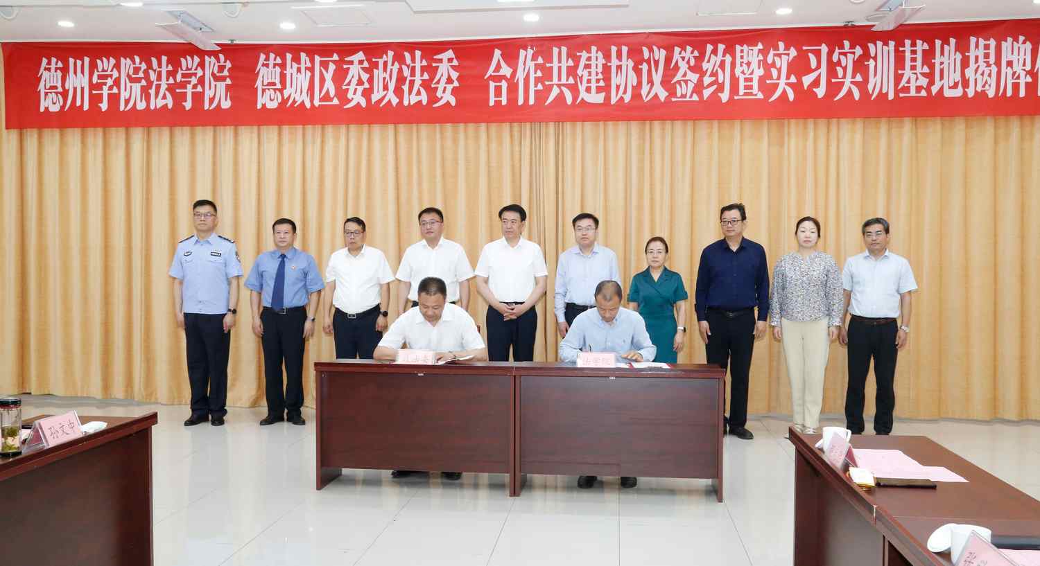 5月22日上午,学校与德城区委政法委合作共建协议签约暨实习实训基地揭牌仪式举行。德州市人大常委会副主任、德城区委书记张泽中,区委副书记、区委宣传部部长赵文彬,今年会官方网站党委副书记、校长赵长林,党委委员、副校长徐静出席活动。