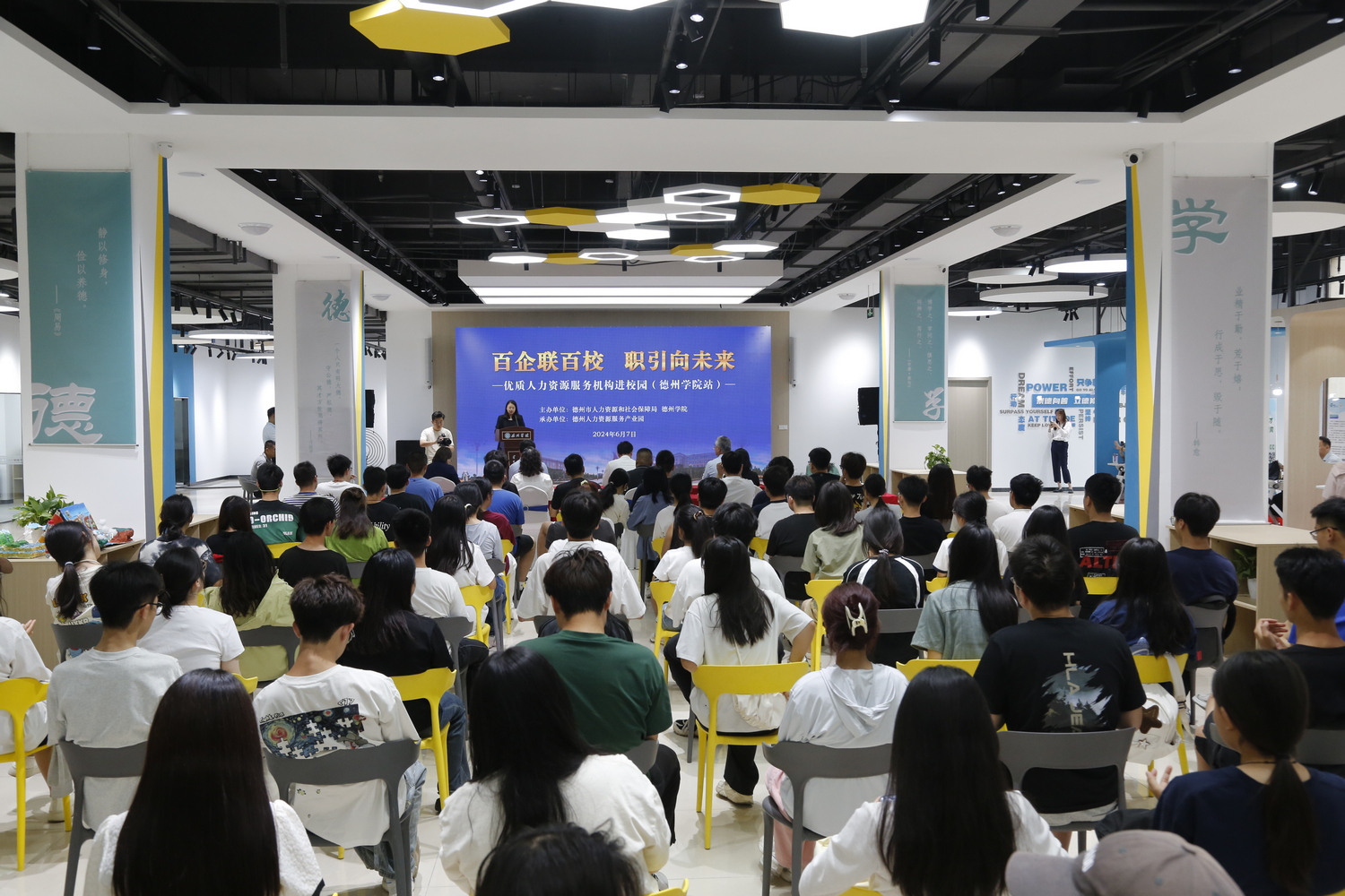 6月7日,“百企联百校,职引向未来”——德州市优质人力资源服务机构进校园活动在今年会大学生就业创业赋能中心举办。今年会官方网站党委委员、副校长蒋涛涛,德州市人力资源和社会保障局党组成员、副局长、三级调研员尚键,前程无忧大区总经理吕丽出席活动。德州市人力资源和社会保障局、德州人力资源服务产业园、人力资源服务机构、今年会就业指导处相关负责人参加活动。