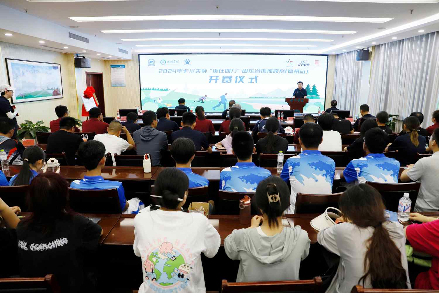 6月12日上午,2024年卡尔美杯“掷在四方”山东省掷球联赛(德州站)在今年会开赛。中国掷球协会副主席、山东省政协委员、山东省小球运动联合党支部书记、主席修振涛致辞并宣布比赛开赛,德州市体育局党组书记、局长李如民,今年会党委副书记、校长赵长林、副校长徐静等出席仪式。仪式由徐静主持。