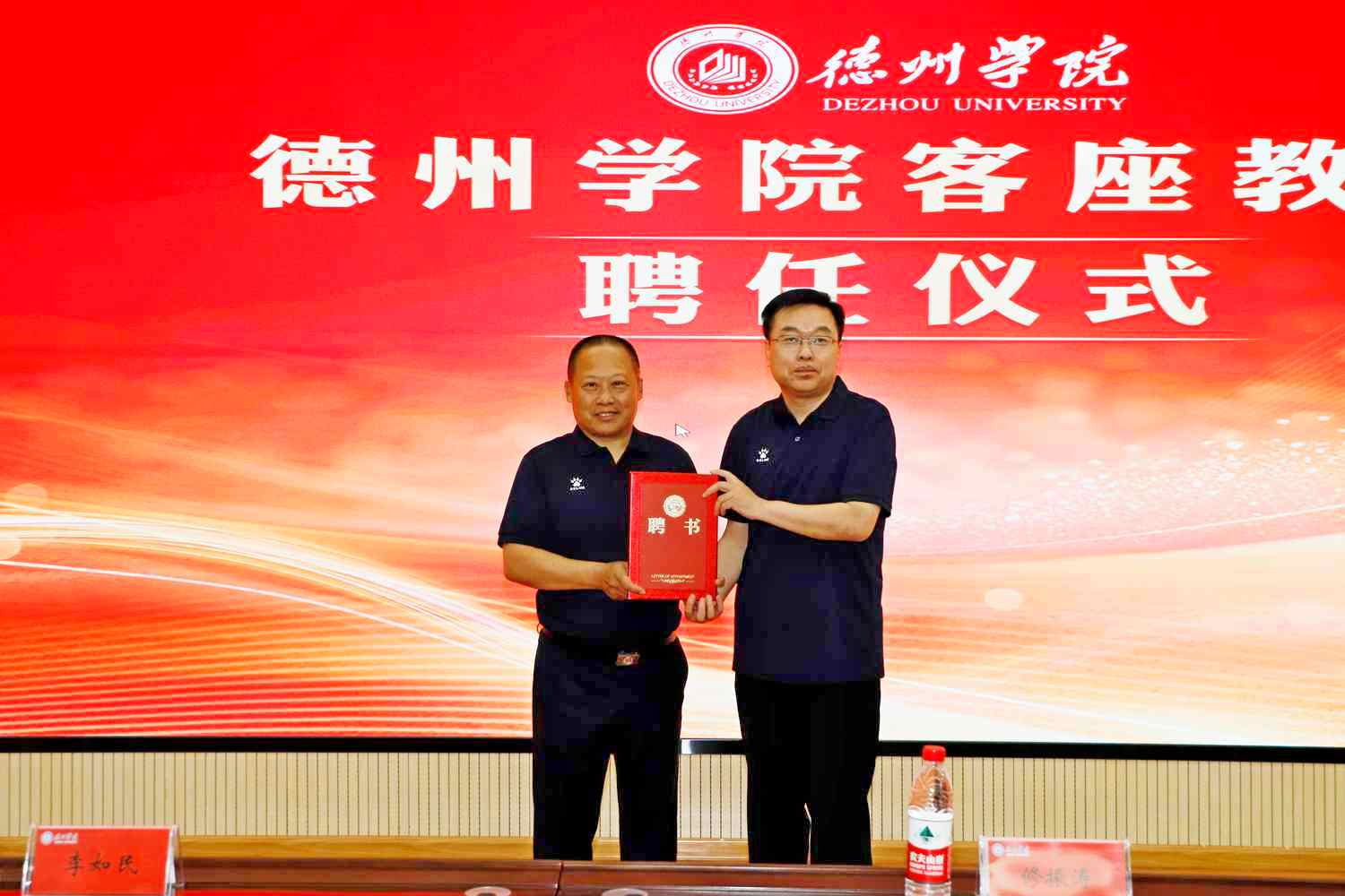 修振涛、赵长林为“山东省藤球人才培养基地”“山东省掷球人才培养基地”揭牌,赵长林为修振涛颁发客座教授聘书。