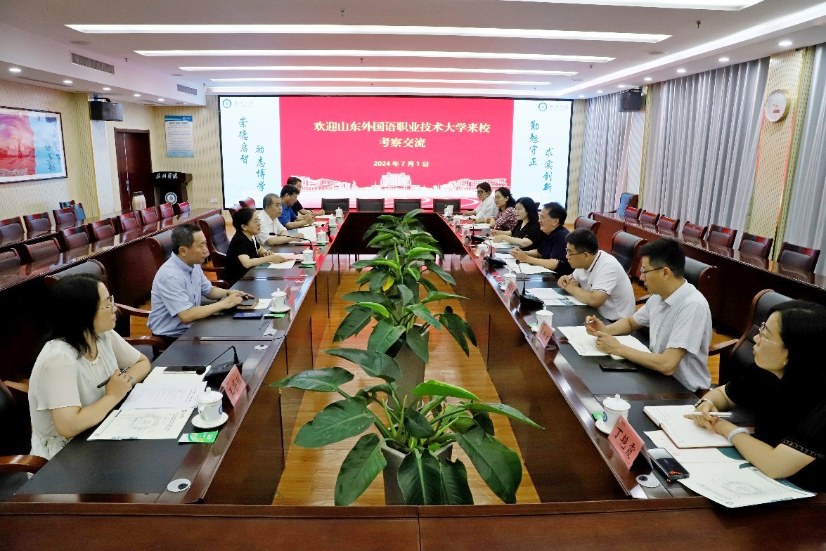 7月1日上午,山东外国语职业技术大学副校长陈文华一行来今年会考察交流。党委委员、副校长徐静出席考察交流座谈会。