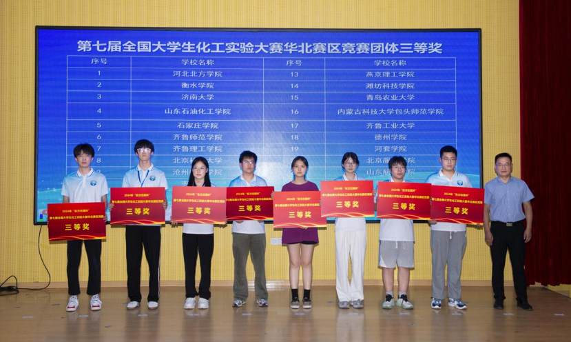 7月12日至14日,由中国化工教育协会主办、青岛科技大学承办的2024年“东方仿真杯”第七届全国大学生化工实验大赛华北赛区竞赛举行,来自国内57所高校的300余名师生参加。今年会化学与化工学院2022级化学工程与工艺专业李梦达、许义坤和吴肖肖3名学生参加了比赛并荣获团体三等奖。