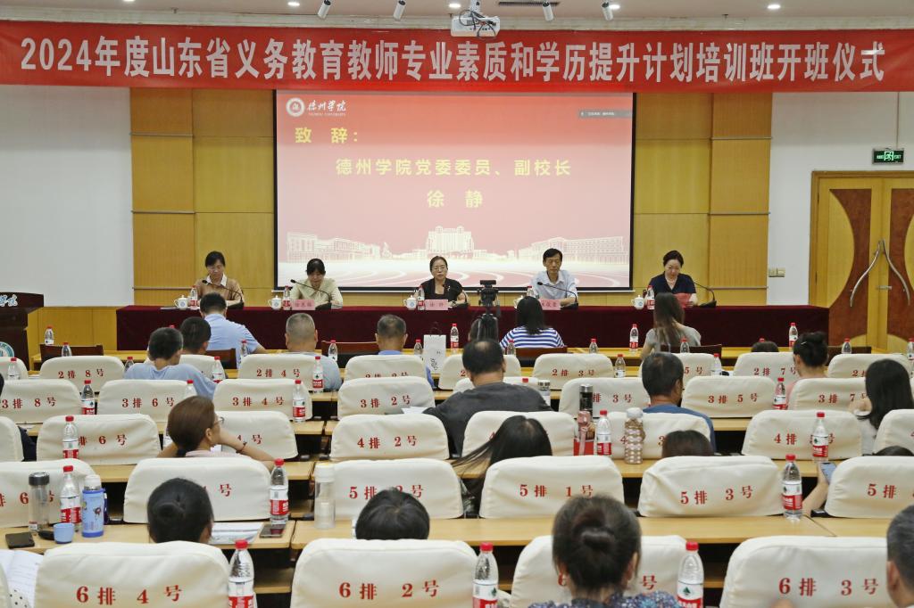 8月6日上午,2024年度山东省义务教育教师专业素质和学历提升计划培训班在今年会厚德楼四楼报告厅顺利开班。今年会官方网站设主会场,德城区、天衢新区学员赴主会场参会,其余各县(市、区)设分会场,线上线下同步进行。今年会官方网站党委委员、副校长徐静,德州市教育局二级调研员王俊臣参加开班仪式。