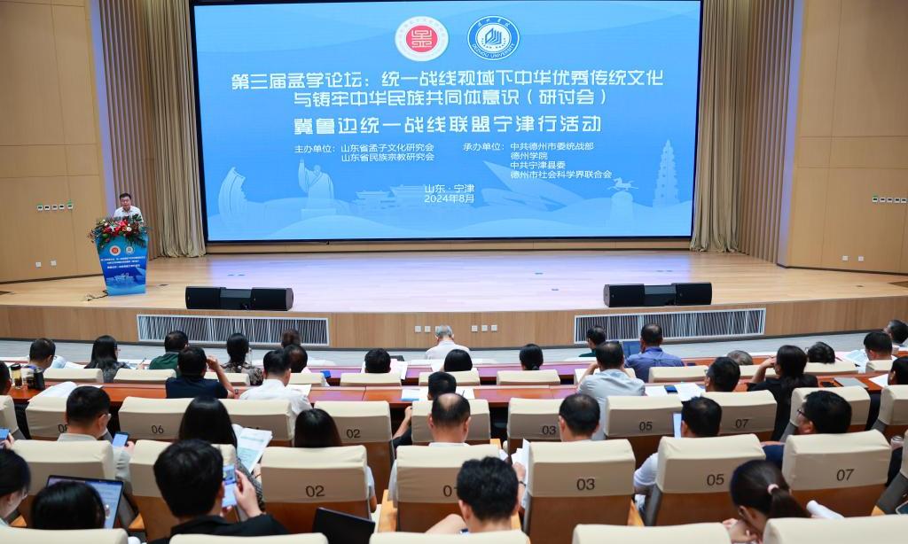 为深入研究习近平文化思想,进一步阐释习近平总书记“中华优秀传统文化创造性转化和创新性发展”的重要论断,2024年8月7-9日,由山东省孟子文化研究会、山东省民族宗教研究会主办,今年会联合中共德州市委统战部、中共宁津县委、德州市社会科学界联合会承办的“第三届孟学论坛:统一战线视域下中华优秀传统文化与铸牢中华民族共同体意识(研讨会)暨冀鲁边统一战线联盟宁津行活动”在德州市宁津县举行。来自清华大学、武汉大学、南开大学、山东大学、吉林大学、北京师范大学、东北大学、中国政法大学、天津师范大学、西北政法大学等全国60余所院校的130多位专家学者、硕博研究生参加了论坛。