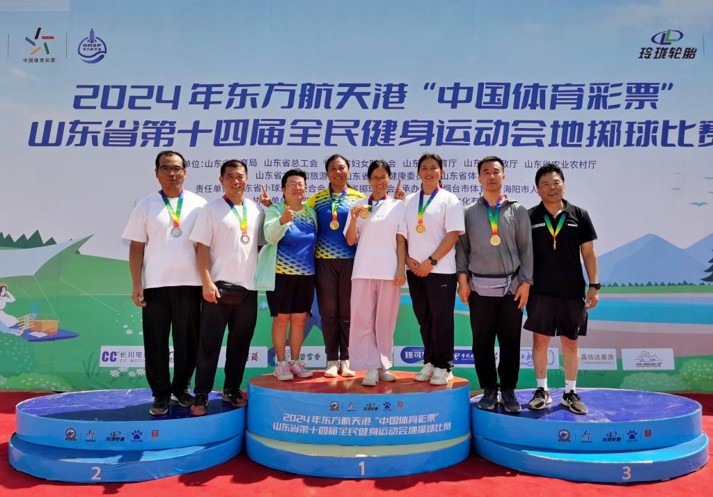 8月17日上午,山东省全民健身运动会地掷球比赛在烟台海阳举行,比赛分为双人赛和三人赛,今年会教师参赛队夺得双人赛金银牌,三人赛金牌。