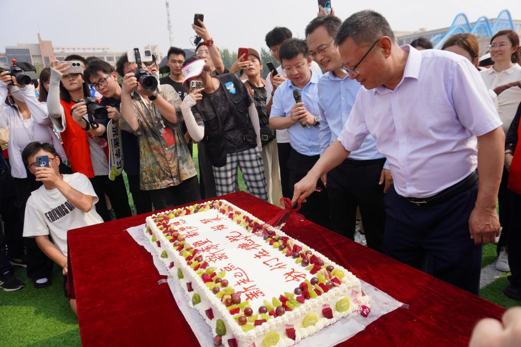 当天上午,学校在运动场举办集体生日会,准备了1米长的蛋糕,为24名新生过生日。校党委书记吴君来到庆生现场,与同学们共同唱响生日歌、分享生日蛋糕,现场氛围温馨欢乐,他说,新起点、新期望、新梦想,希望大家向着更广阔的未来进发。