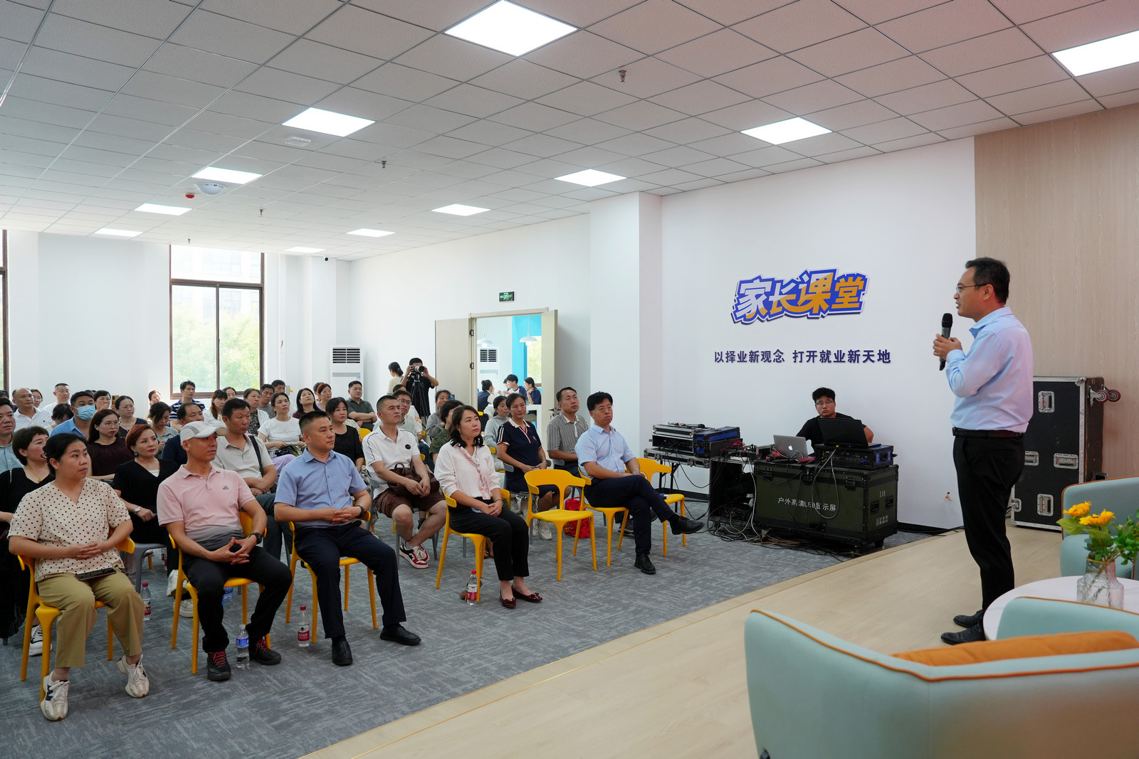 新生报到期间,学校开设家校共育大讲堂,针对家校共育的具体途径和方法,对广大家长关心的家校共育话题进行探讨,促进家校协同育人大融合,共同营造学生健康成长空间,让孩子变得更好,家长更幸福,家庭更和谐。