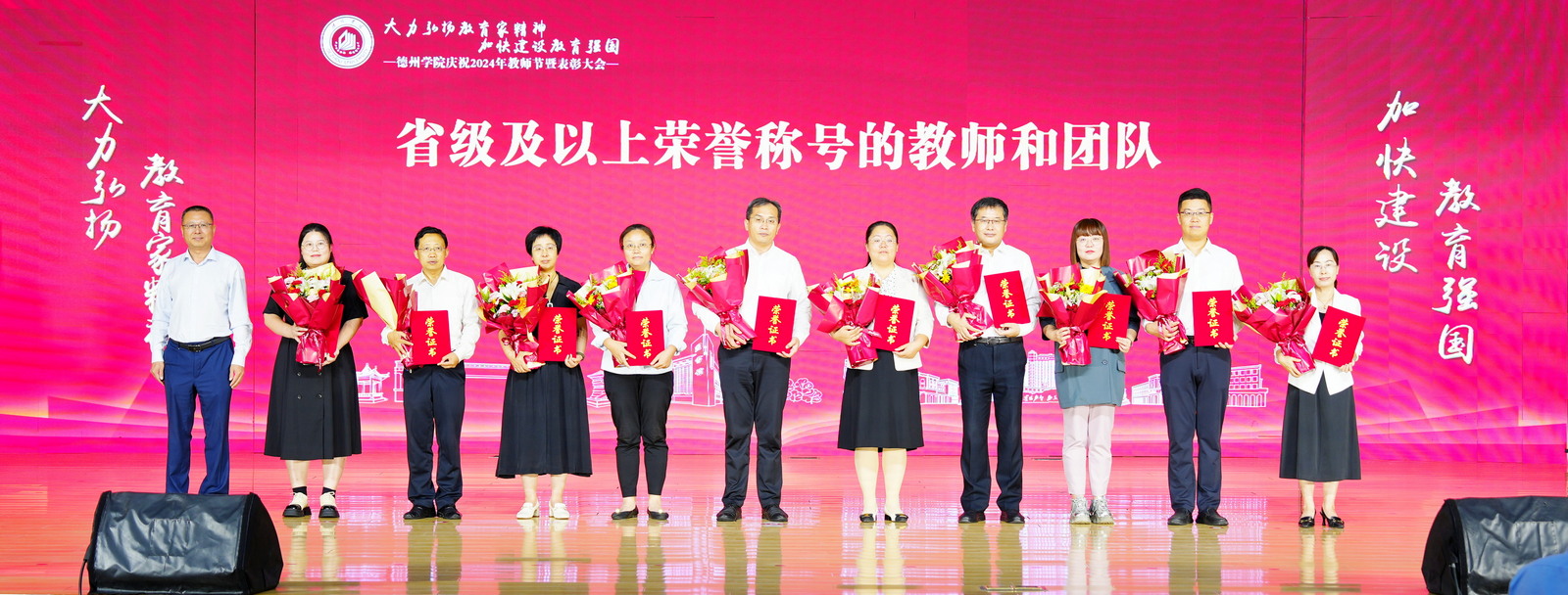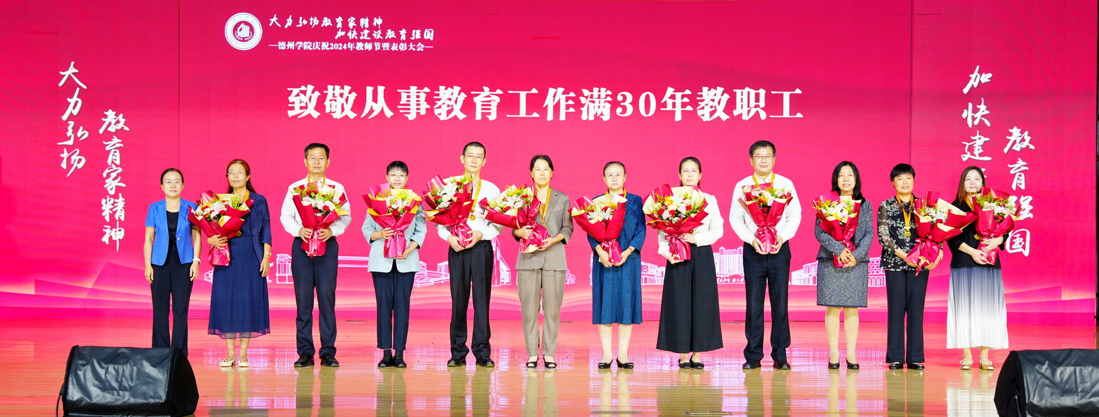 受表彰教师和团队代表,2024年新入职教师,全体处级干部,各教学科研单位教师代表、学生代表参加大会。