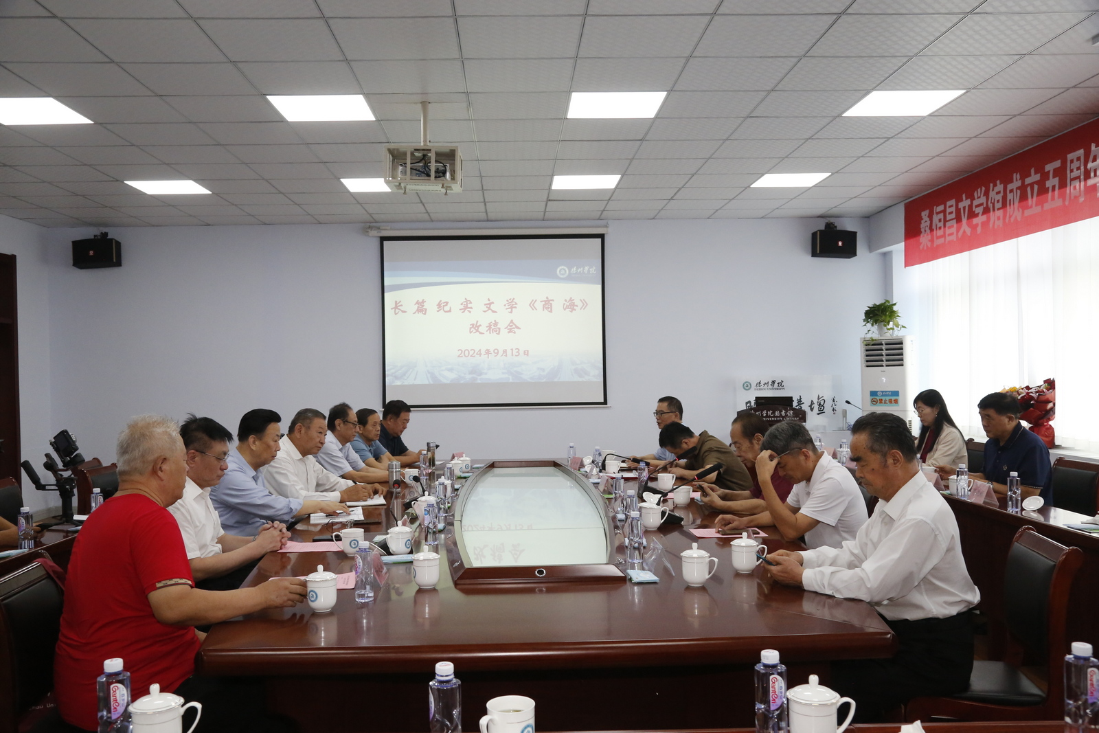 图书馆负责人介绍了桑恒昌文学馆成立五年来的工作情况及未来建设规划。与会代表作了交流发言。座谈后,召开了长篇纪实文学《商海》改稿会。全体人员参观了文学馆。