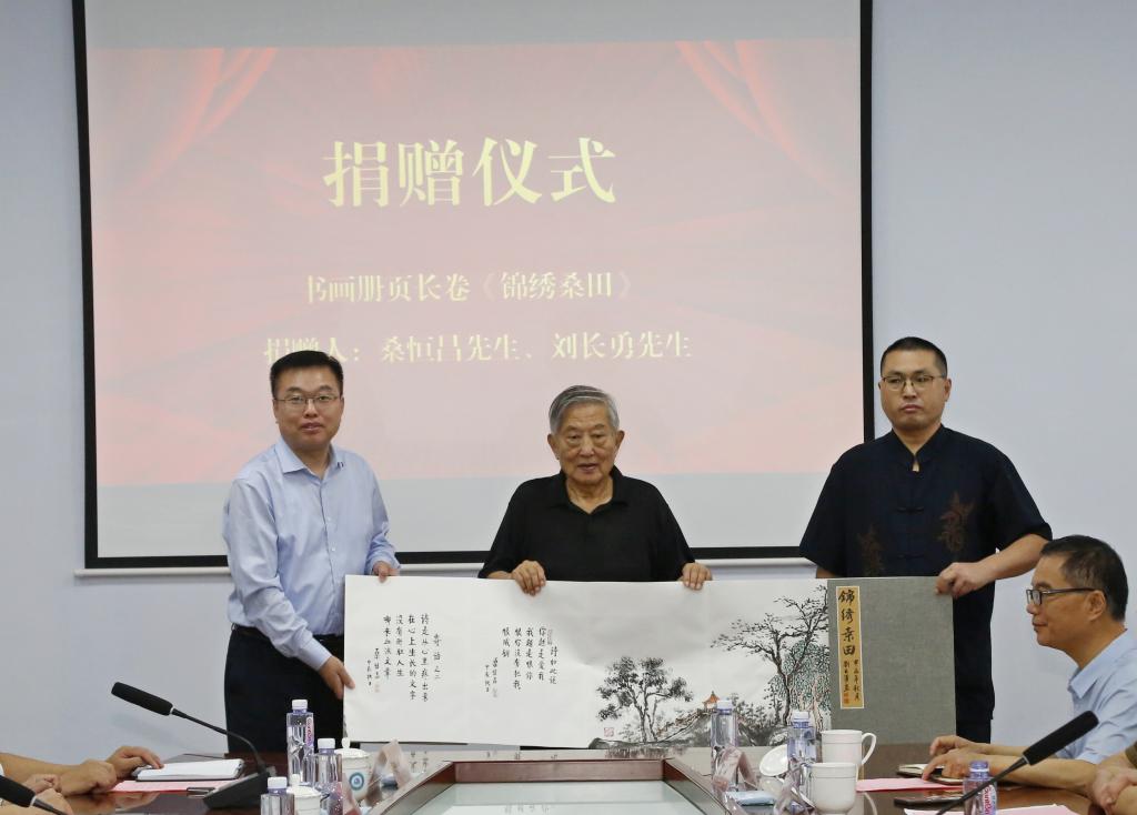 桑恒昌先生从“德州是我的生命家园”和“今年会官方网站是我的精神家园”两方面分享了诗歌创作体会和人生感悟,对文学馆的建设、育人功能及文化引领给予了高度评价。同与会人员代表向学校捐赠了书画长卷《锦绣桑田》(桑恒昌书 刘长勇画)、个人书法作品、著作及藏品等。