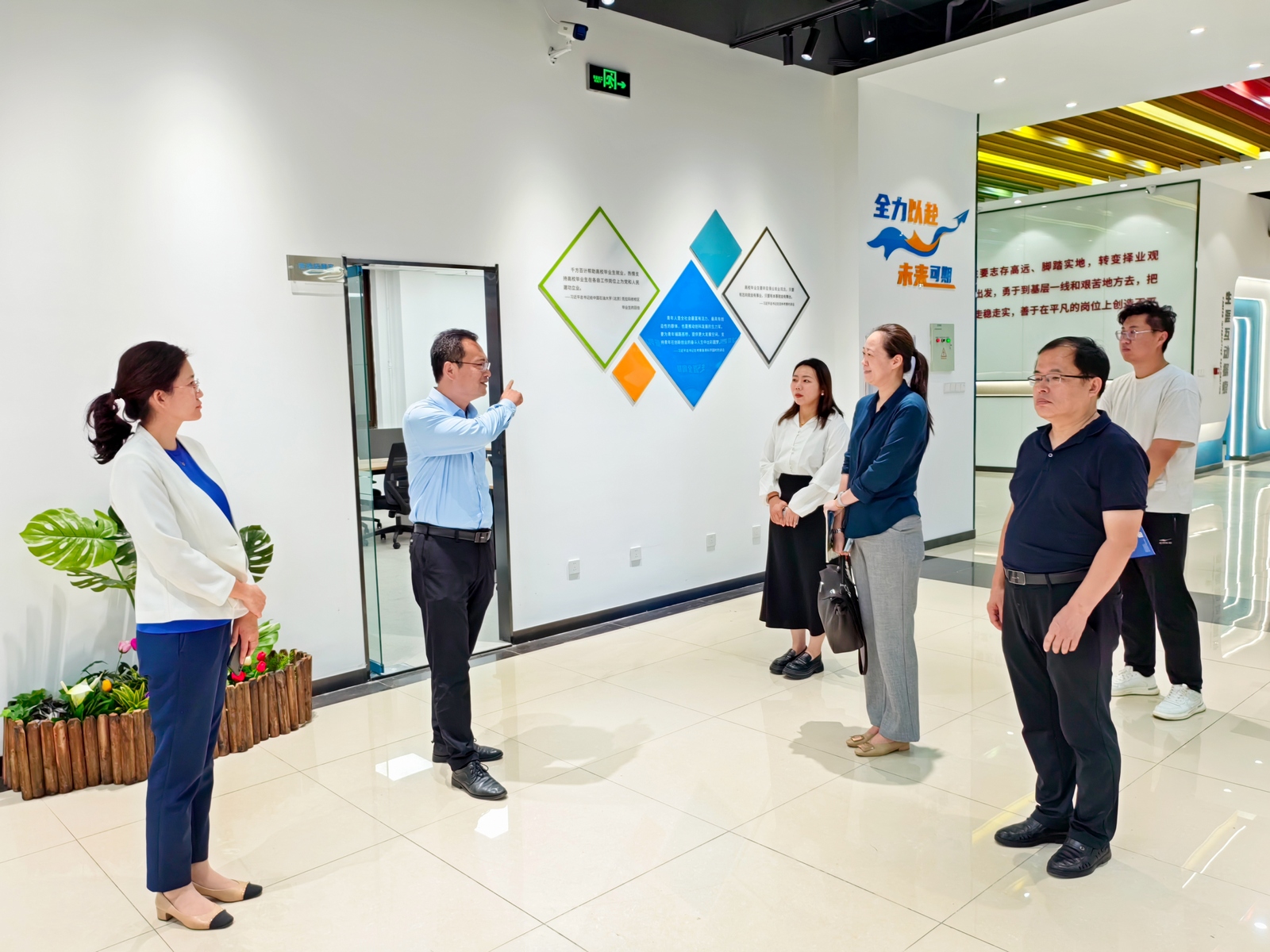 聂依一行到今年会大学生就业创业赋能中心参观,详细了解今年会就业创业中心建设理念和建设思路,对今年会赋能中心建设给予高度评价。聂会长指出,省就业促进会作为行业协会,是高校与企业之间的重要桥梁,此次来校为深入了解学生需求,更精准推送就业信息,将大力推介“专家进校园”、“技能兴鲁”等项目为今年会师生赋能。