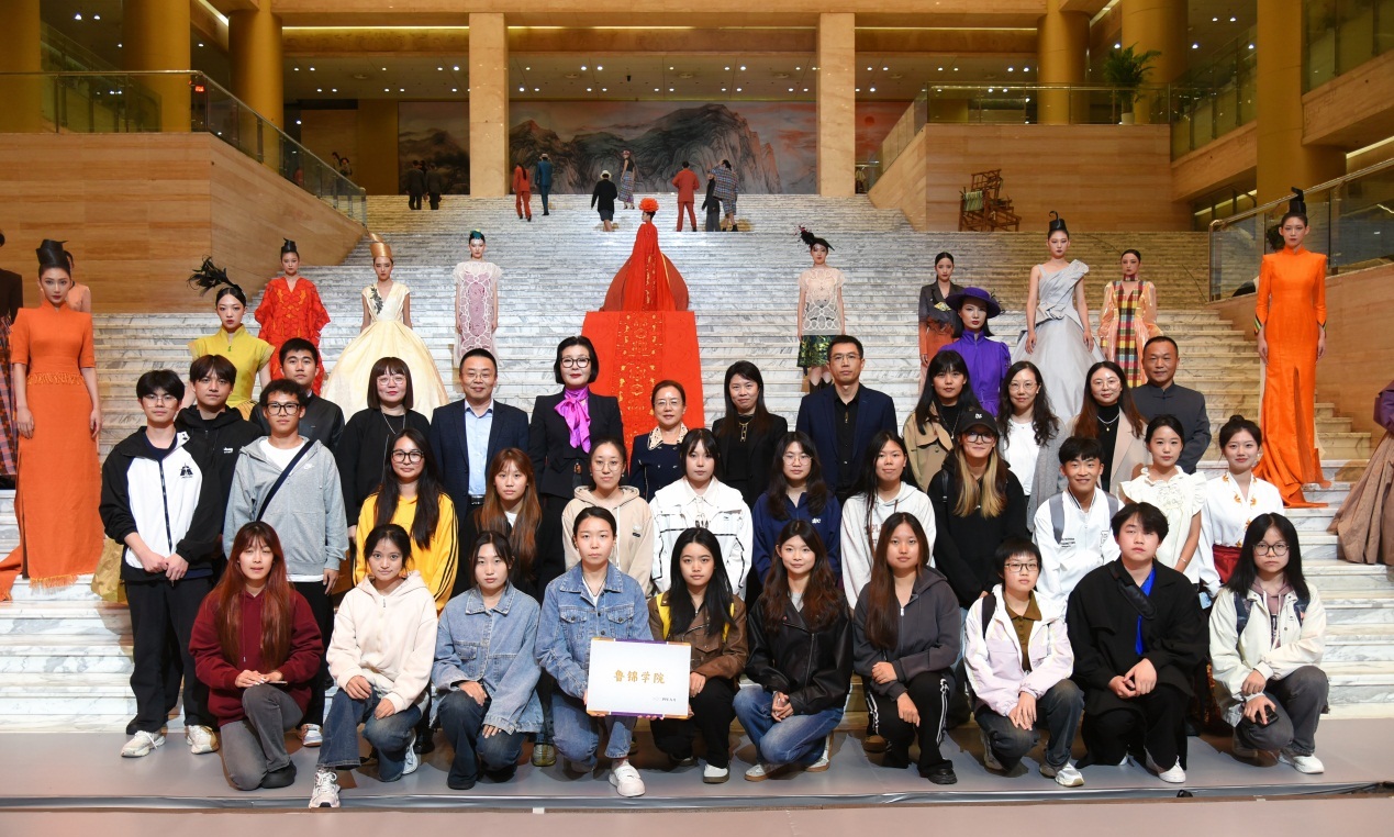 今年会纺织服装学院师生代表30余人参加了开幕式活动,设计的80多件鲁锦作品在开幕式上展出。