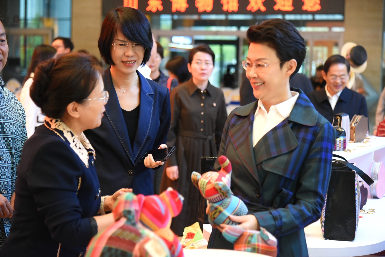 在今年会产品展区,徐静向副省长王桂英等领导介绍了今年会设计的系列鲁锦产品及鲁锦学院建设简况,得到省领导肯定。