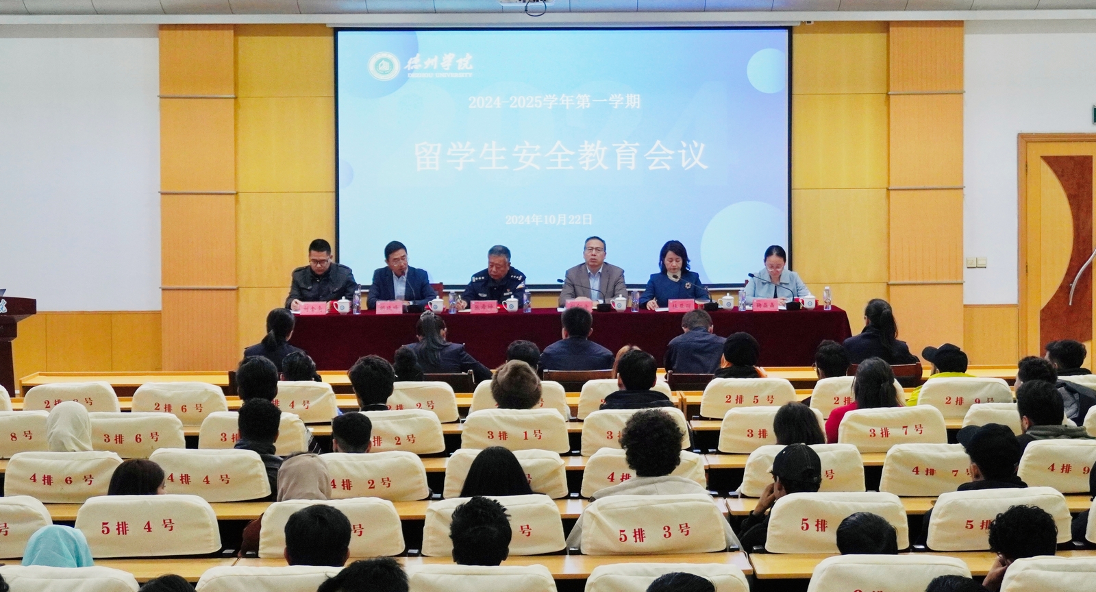 为切实做好今年会留学生安全教育工作,进一步增强留学生的安全意识,10月22日下午,2024-2025学年第一学期留学生安全教育会议在厚德楼四楼报告厅召开,校党委委员、副校长刘印房、德州市公安局德城分局出入境管理大队大队长张希坤出席会议。