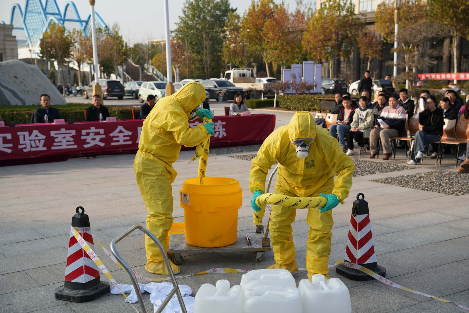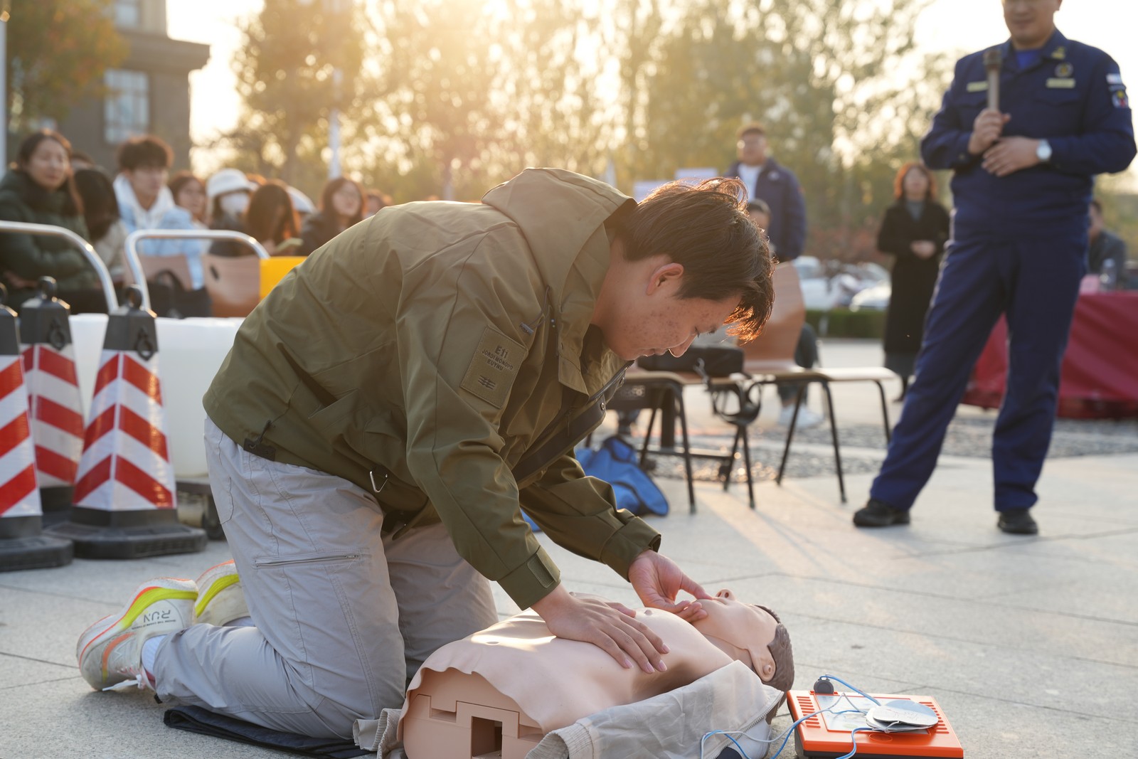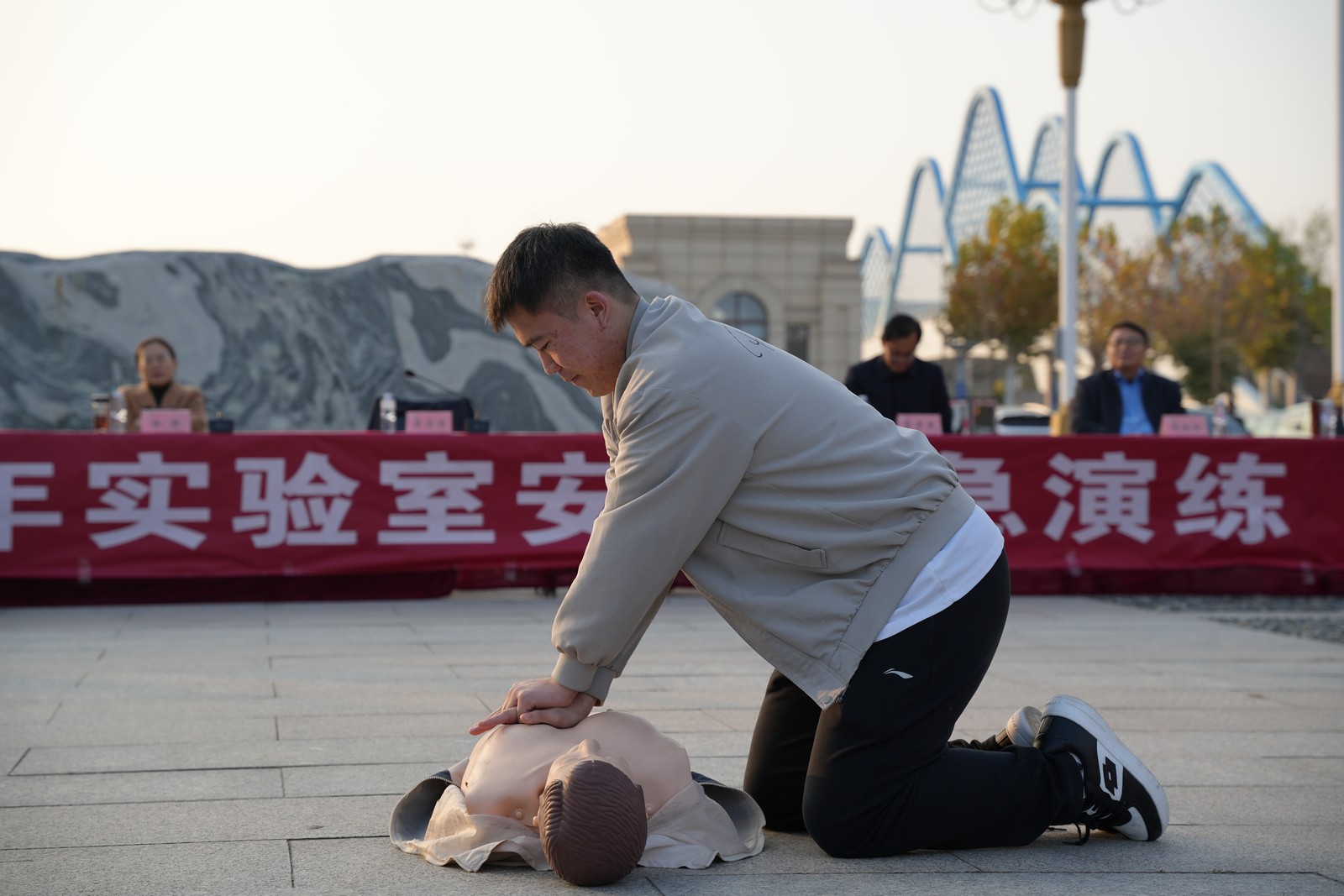 现场开展了实验室危废倾洒应急、消防安全应急、心肺复苏急救三部分演练,应急专家现场就实验室危废倾洒泄露处置方式、消防灭火要点与心肺复苏急救要点进行了讲解,师生实际演练了实验室危险废弃物倾洒、消防器材使用与心肺复苏急救等一系列应急处置内容。现场通过互动问答引导师生带着问题思考、结合实战应用,有力提升了师生的应急能力。