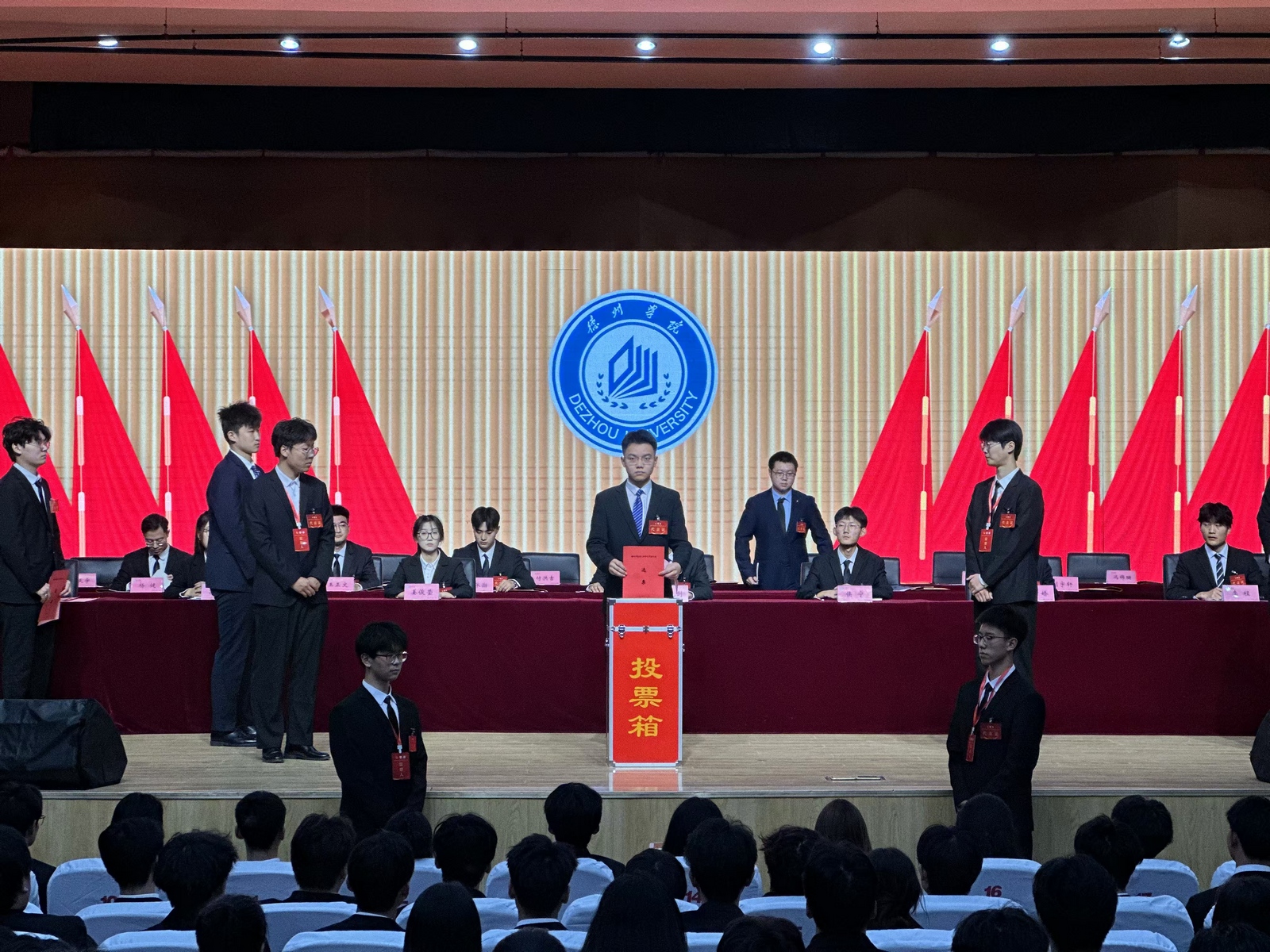 开幕会上,蒋涛涛代表学校党委对大会的胜利召开表示祝贺,对学校各级学生会组织在思想政治引领、志愿服务、权益维护、就业创业、社会实践、安全稳定、学校治理等方面作出的努力和成绩表示充分肯定,就下一步持续深化学生会组织改革提出了明确要求,并向学生会组织和广大青年学子提出三点希望:一要胸怀强国之志。要争做堪当民族复兴重任的时代新人,带头明大德、守公德、严私德,结合“大学生文明养成”专项行动、德州市文明城市创建和省文旅大会召开等重要时间节点,在实践历练中涵养家国情怀、砥砺奋斗精神,成为急难险重任务中一支靠得住的力量。二要锤炼强国本领。要自觉涵养“勤学善思,知行合一”的学风,主动对接国家、时代和社会需求,积极 参与到“百万大学生进社区”“青年实干家”等各类社会实践,以及正在开展的“AIGC青年创新创业行动”中,把潜在天分激发为持续的创造力,不断积累和磨炼应用型人才所具备的就业素质、社会能力和AI技能。三要追逐强国之梦。要主动围绕新时代新征程党的中心任务和学校重点任务,发挥只争朝夕的历史主动,常思考“青年何为”,积极在投身经济发展、科技创新、乡村振兴、民主法治、社会服务等方面发挥作用;常思考“青年何位”,积极在科技竞赛、创新创业、社会实践、志愿服务等方面强化责任,勇挑重担,在学校高水平有特色国际化应用型大学建设中挺膺担当。