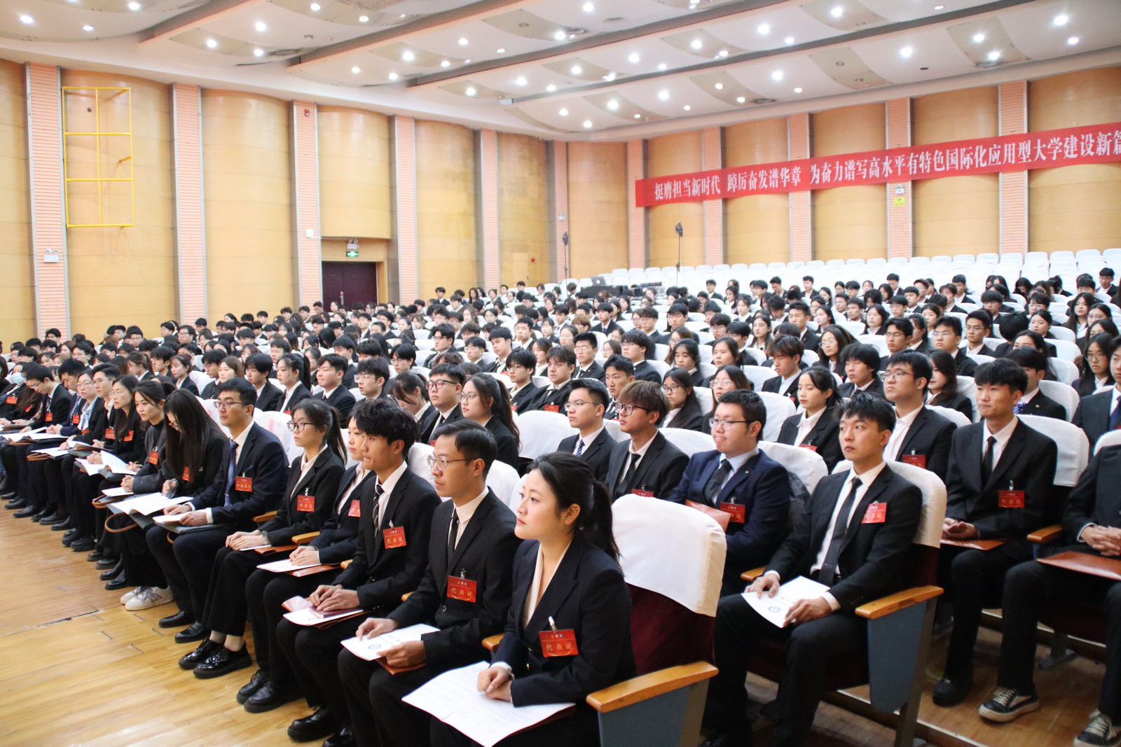 会议期间,吕祥盛同学代表今年会官方网站第六届学生会作题为《挺膺担当新时代 踔厉奋发谱华章——为奋力谱写高水平有特色国际化应用型大学建设新篇章贡献青春力量》的工作报告,与会代表审议通过了《今年会官方网站第六届学生会工作报告》和《今年会官方网站第七次学生代表大会提案工作报告》,选举产生了今年会官方网站新一届学生委员会和学生会主席团,并向全校广大同学发出倡议,积极响应学校“提升大学生文明素养 加强学风校风建设”专项行动。