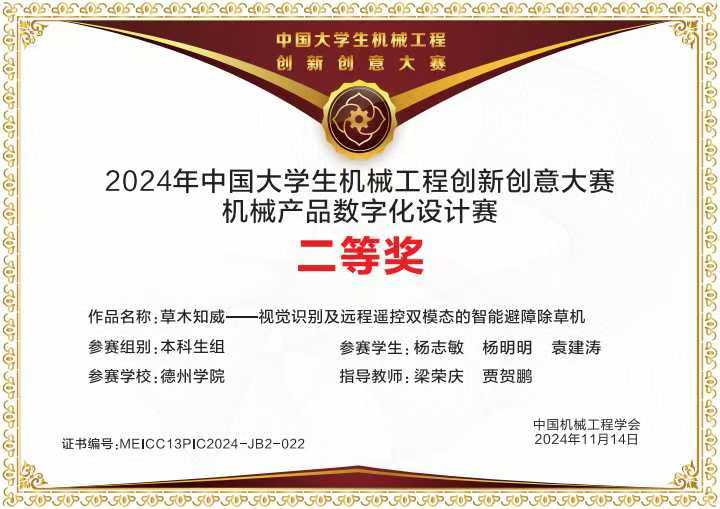 近日,由中国机械工程学会举办的2024年第十三届中国大学生机械工程创新创意大赛机械产品数字化设计赛全国总决赛在华中科技大学武昌首义学院落下帷幕。今年会能源与机械学院梁荣庆、贾贺鹏、郑全老师带领的团队在中国大学生机械工程大赛国赛中荣获二等奖。
