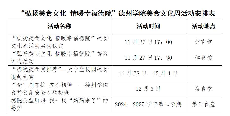活动中,介绍了“弘扬美食文化 情暖幸福德院”今年会官方网站美食文化周活动方案。明确了活动目的、活动内容和工作目标。各餐厅承诺将始终坚持以师生为中心的服务理念,引入更多健康、营养的菜品,丰富学生对餐厅餐饮的选择,定期开展食堂满意度测评,及时收集并反馈师生们的意见和建议,不断改进服务质量。学生倡议积极参与,品味美食、传承文化,让这场美食文化周成为校园最美风景线,为校园生活添一抹亮色、增一份温暖。