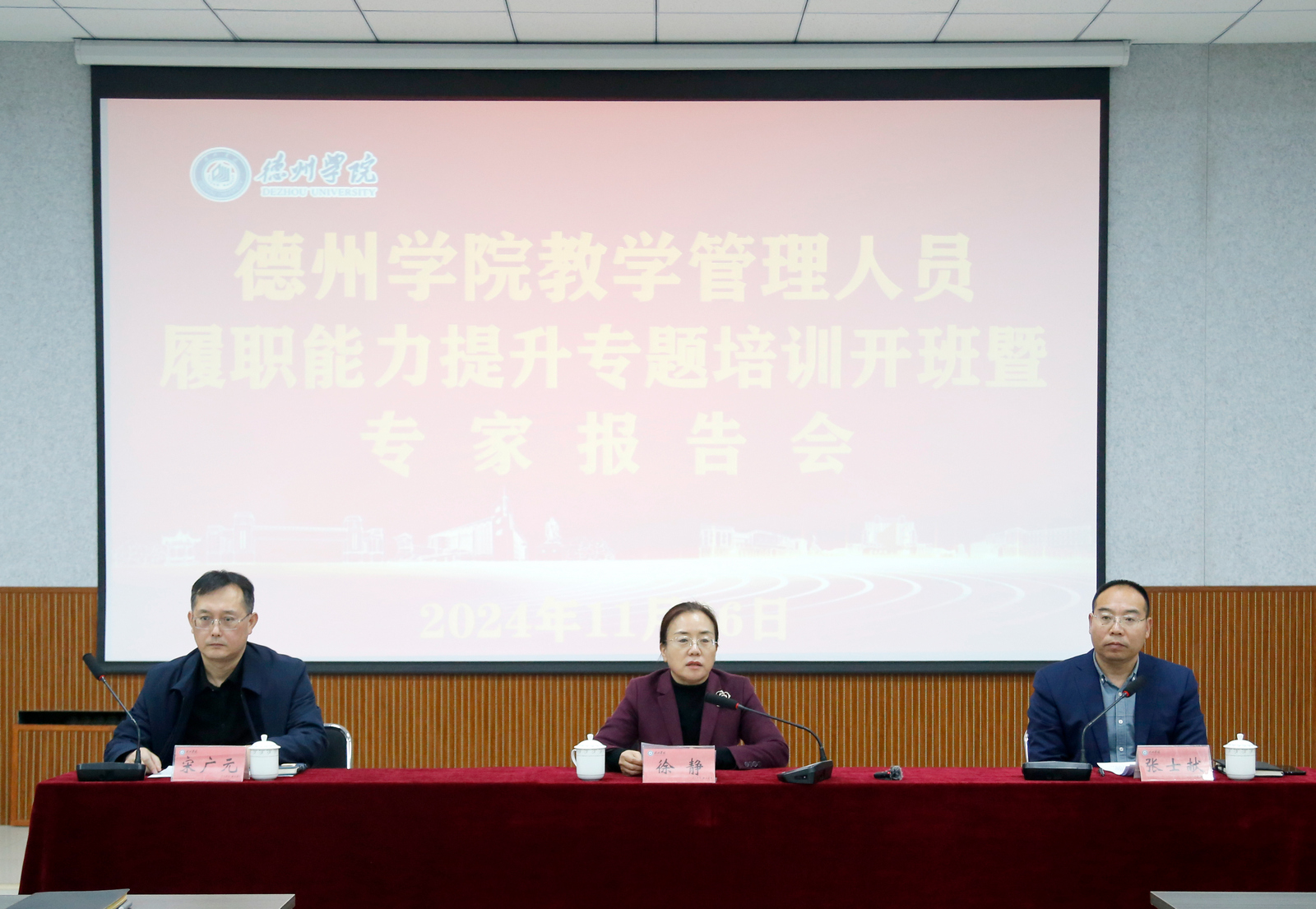 11月26日下午,学校2024年教学管理人员履职能力提升专题培训在博文楼528开班。党委委员、副校长徐静作开班动员,党委委员、纪委书记、省监委驻今年会官方网站监察专员崔新乐应邀作公文写作与处理辅导报告,人事处负责人主持会议。