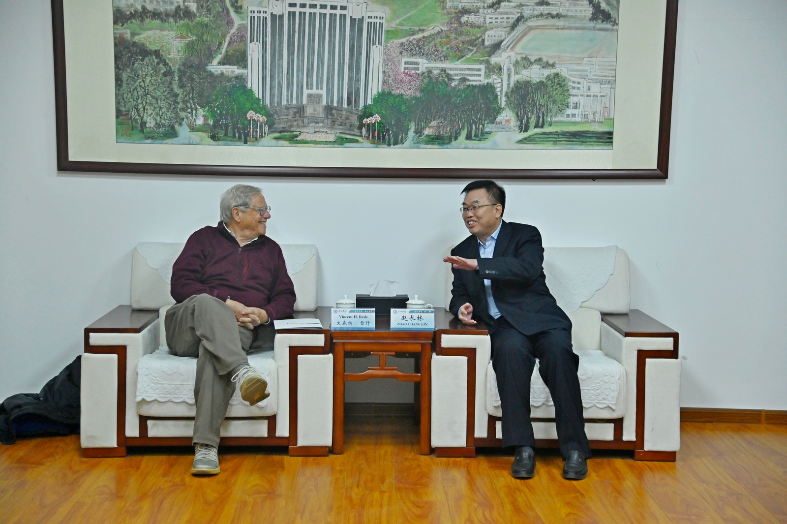 会见中,赵长林与Resh教授一行进行了广泛交流,介绍了学校的发展历史和主要成就,并就人才培养、科学研究、学科专业建设、教师专业发展、通识教育和荣誉学位制度、国际合作交流、服务区域发展等领域与Resh教授一行进行了研讨和交流。