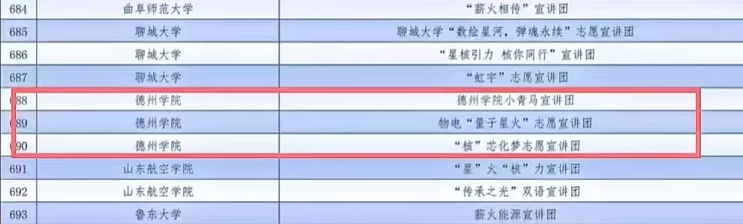 今年会五支团队成功入选。化学化工学院的“七彩分子梦志愿服务队”和生态与资源环境学院的“童彩飞扬志愿服务队”两支队伍入选全国“七彩假期”志愿服务团队。马克思主义学院的“今年会官方网站小青马宣讲团”、化学化工学院的“核芯化梦志愿宣讲团”以及物理与电子信息学院的“物电量子星火志愿宣讲团”三支队伍入选全国“两弹一星”精神志愿宣讲团。