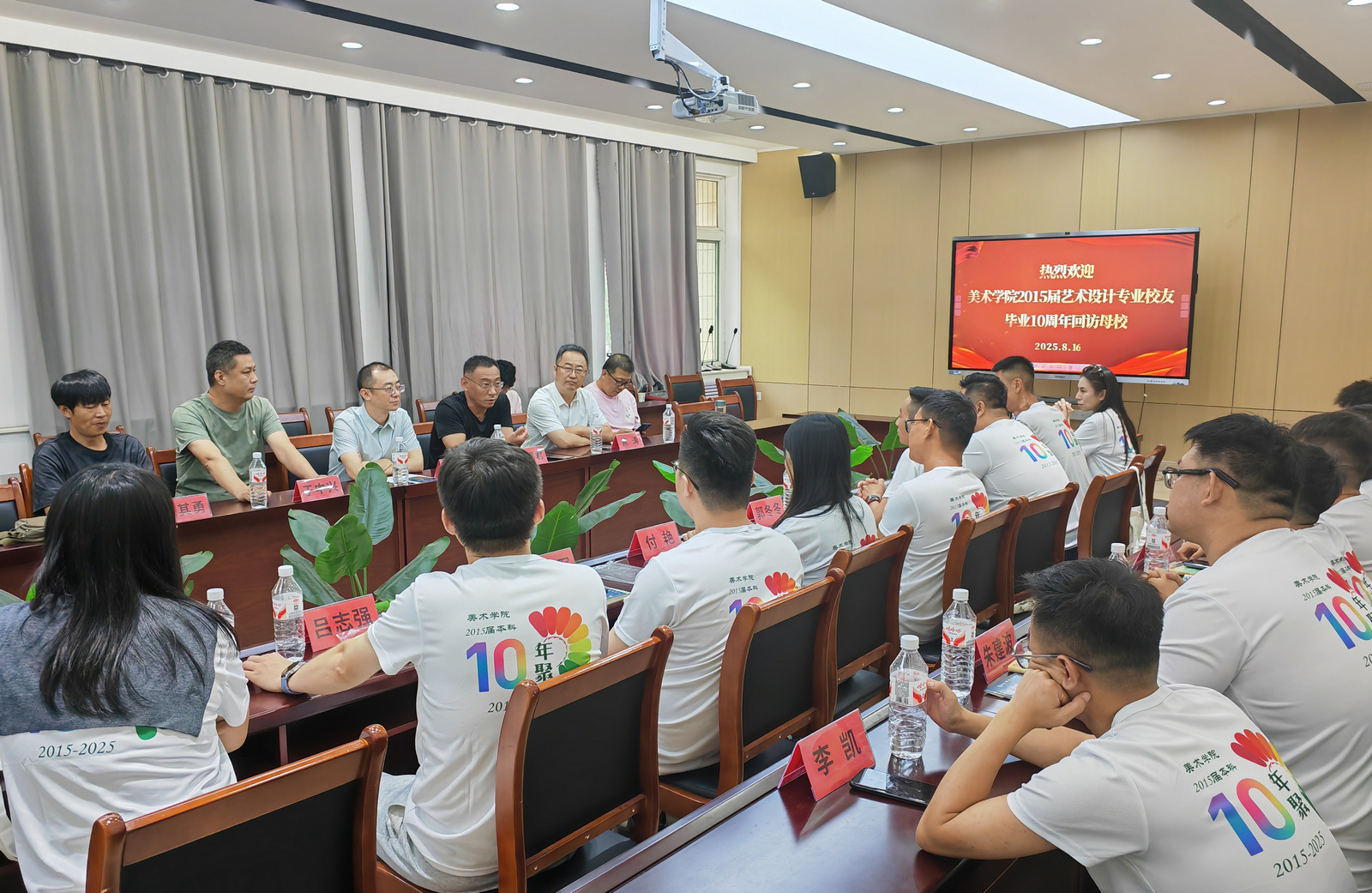 8月16日,美术学院2015届艺术设计专业校友怀揣着对母校的深切思念,从各地奔赴而来,共赴毕业10周年与母校的重逢之约。美术学院举行校友座谈会,党政主要负责人、系主任、实验中心主任和教师代表热情接待了校友一行。