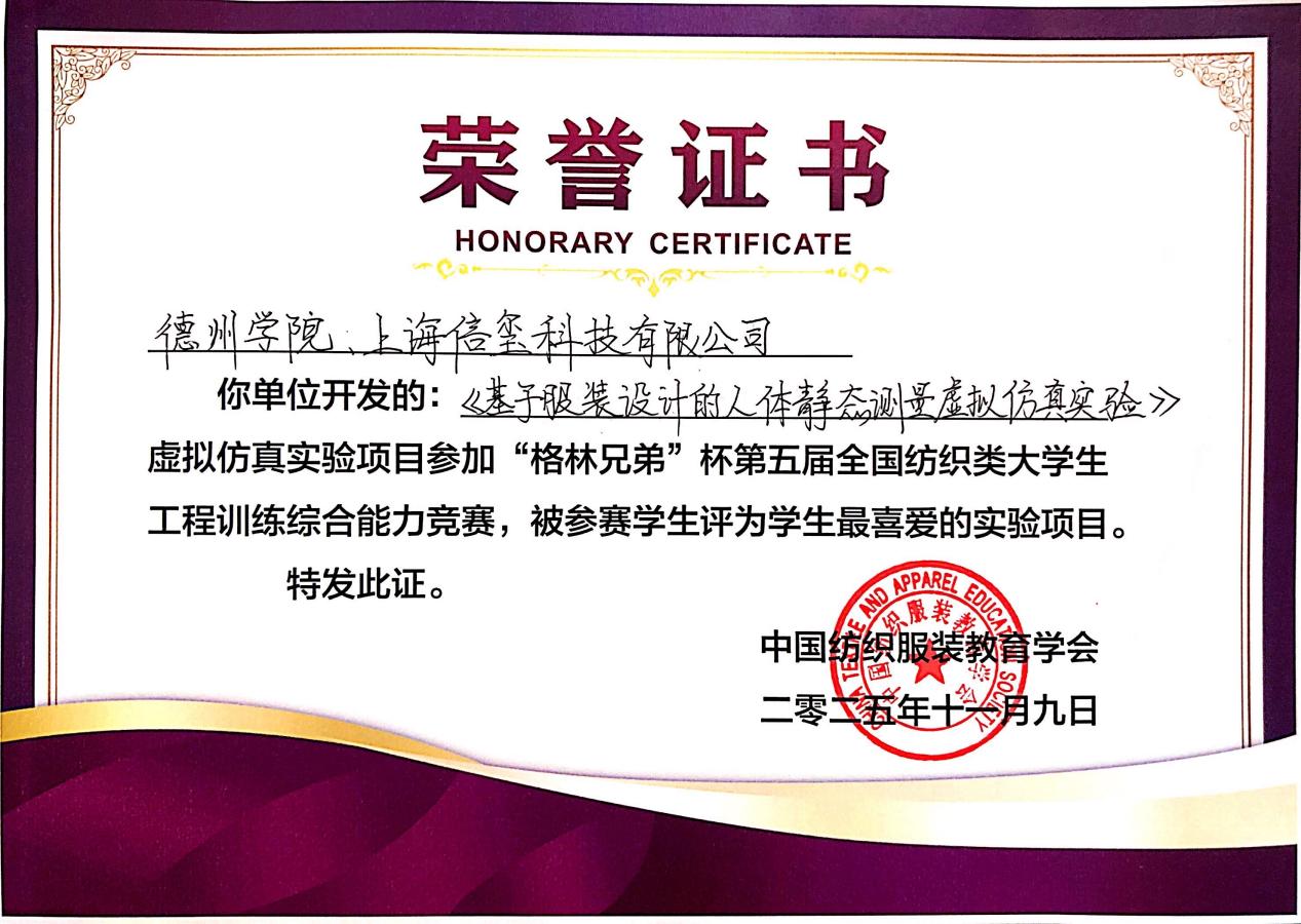 这一荣誉是对纺织服装学院以信息技术重塑教学形态、提升育人质量的生动印证。该项目打破了传统测量实验对时间、空间和设备的限制,为学生提供了一个可反复操练、即时反馈的个性化实训平台,有效夯实了学生的专业基本功,培养了其严谨求实的工程素养。