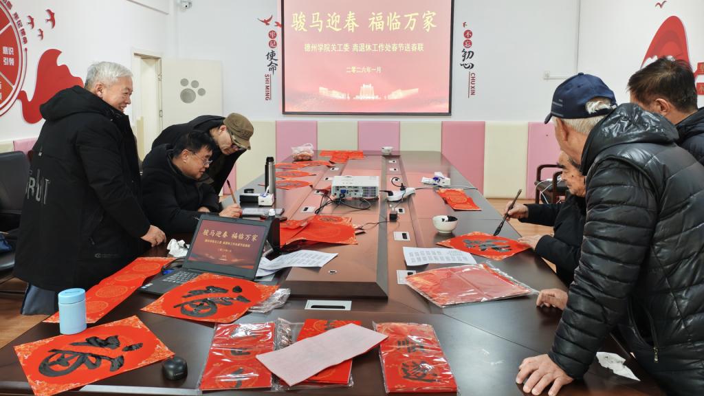 1月23日农历腊月初五上午,校关工委在学府家园老干部活动中心开展2026年“骏马迎春 福临万家”春节送春联活动。活动现场老中青三代济济一堂,共同用笔墨书写新春祝福,传递温情与关爱。