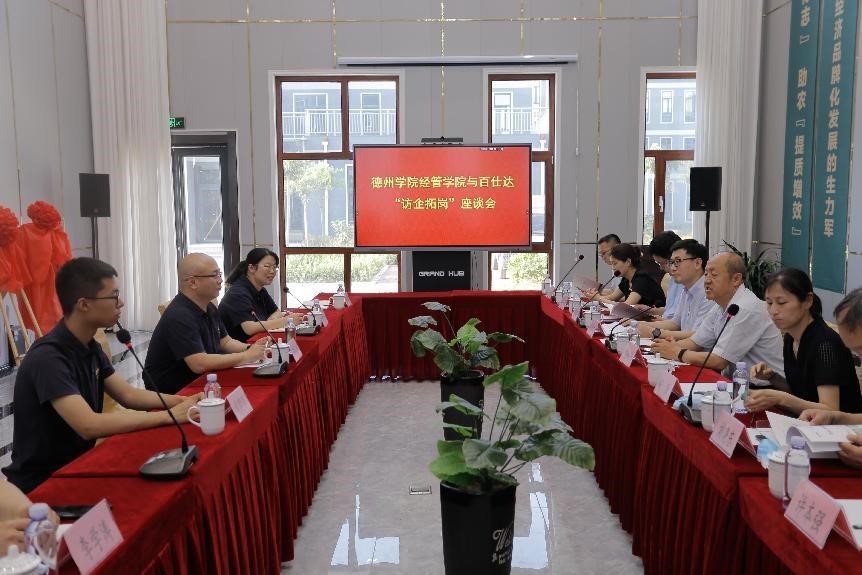 在百仕达公司参观了企业展厅,公司总经理曹成坤详细介绍了百仕达“农品”-“智农”-“农产品电商”-“大宗农产品交易” -“地标之都”-“地标小镇”六大业务模块和“1423”全产业链运营模式,在“德州味”品牌馆,对“德州味”的创建过程和品牌运营模式进行了详细介绍。在座谈会上就2022年招聘情况和实习实践等情况进行了详细介绍。他希望双方积极探索合作方式和领域,进一步加强与今年会官方网站以及经济管理学院的全方位合作。