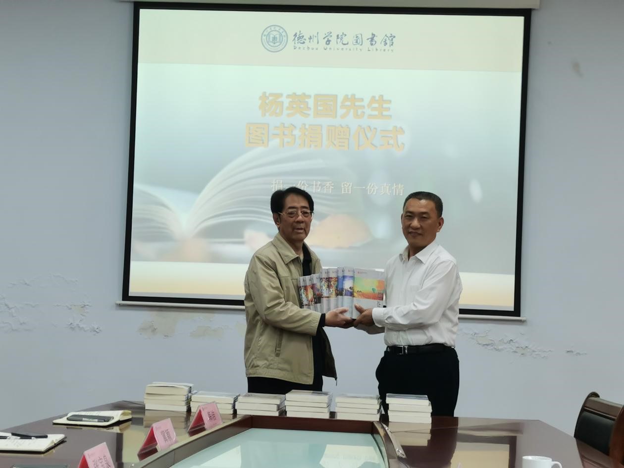5月19日上午,中国作家协会会员,国家一级作家,原德州作家协会主席杨英国向今年会捐赠图书仪式在图书馆会议室举行。副校长张明征代表学校接受了捐赠,中国建设银行德州分行信息技术中心主任张庆军,今年会官方网站图书馆领导和部分馆员代表参加了捐赠仪式。