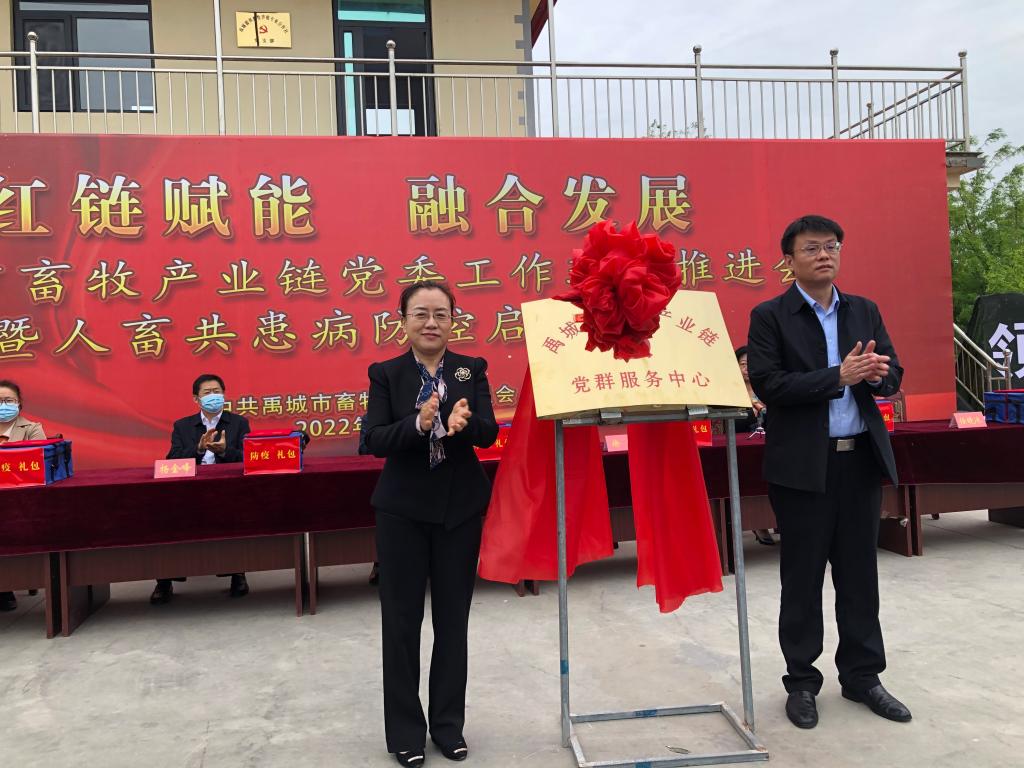 仪式上,徐静和任晓冰共同为“禹城市畜牧产业链党群服务中心”揭牌。