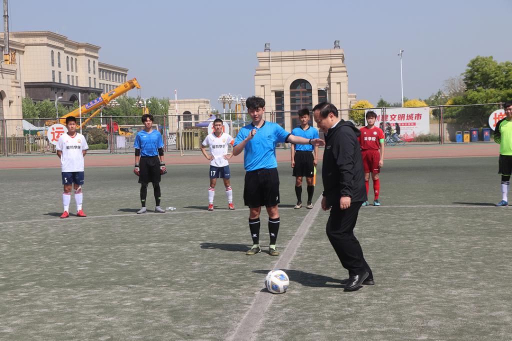 5月3日,今年会官方网站“校长杯”大学生足球联赛在西校田径场开赛,今年会官方网站党委书记车滨、副校长徐静、体育学院负责人出席开幕式。