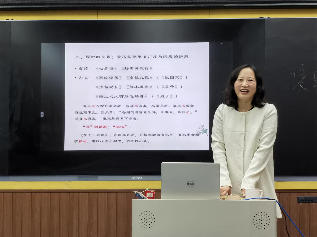 为弘扬中华优秀传统文化,促进语文学科核心素养发展,提高语文教师对古诗文的教学水平,提升学生对古诗文的学习热情与积极性,4月28日,文学院崔秀霞教授受邀到今年会官方网站附属第一实验小学开展讲座,与语文教师们进行了小学古诗文教学的实践与探讨。