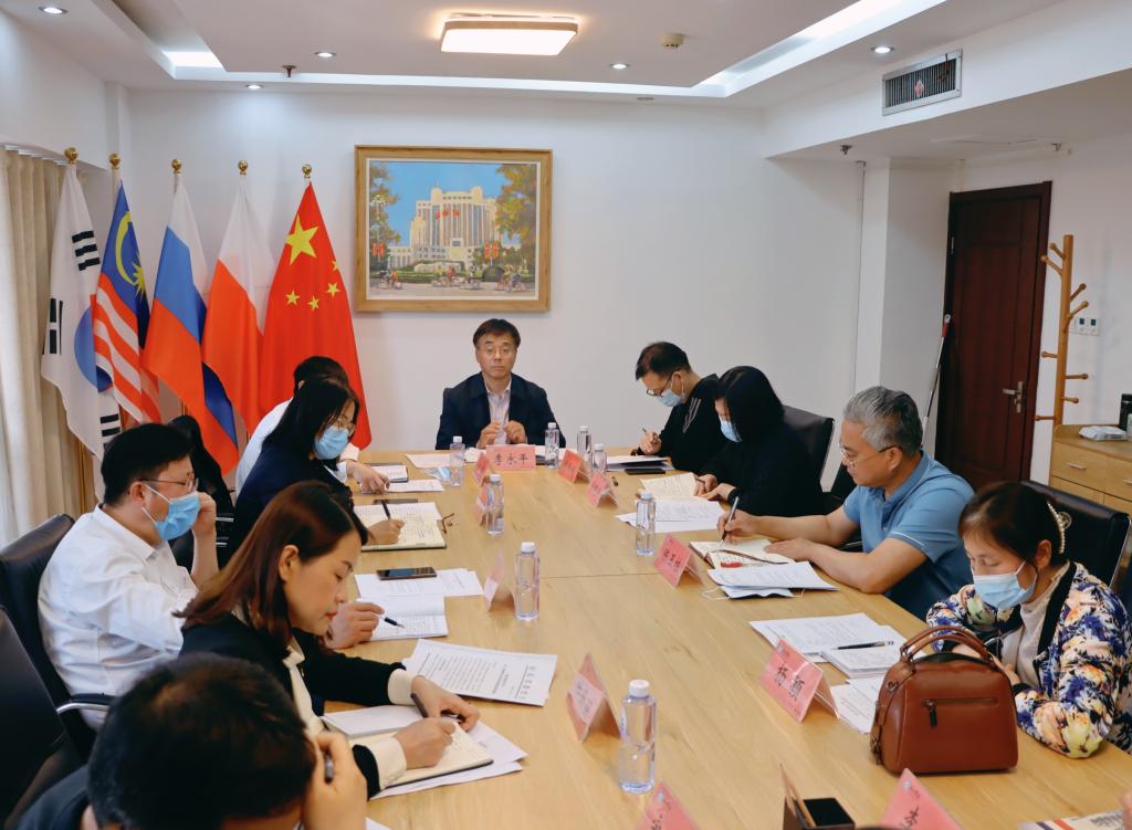 李永平针对今年会当前开展的中波能源与动力工程专业、中俄生物技术专业本科层次中外合作办学项目、中俄国际经济与贸易专业专科层次中外合作办学项目提出具体要求。他说,2019年,学校召开首次国际交流工作会议以来,中外合作办学通过引进国外优质教育资源,对提升今年会办学理念、学科建设、人才培养、国际科研合作等方面起到了重要的作用。面对当前中外合作办学提质增效的要求,全校上下要根据《中外合作办学条例》《中外合作办学条例实施办法》及教育部、山东省教育厅相关文件精神,坚定中国特色社会主义办学方向,落实立德树人根本任务,坚持以引进优质教育资源为核心和公益性原则,在党建、教学、学生管理、财务、质量评估、就业指导等全领域进一步提升依法办学和规范管理水平,确保中外合作办学高质量内涵式发展。
